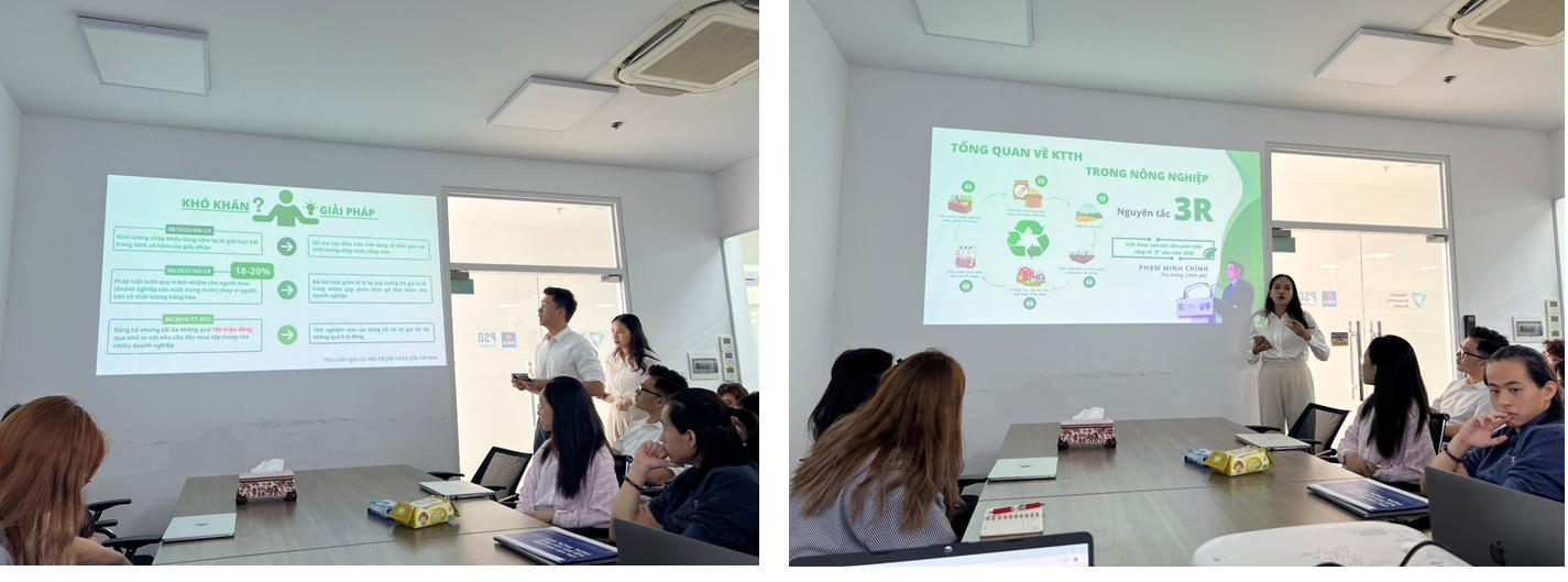 Trong khuôn khổ phiên thuyết trình, các em đã trình bày hai nội dung nghiên cứu, bao gồm: Các văn bản pháp luật lĩnh vực thuế thu nhập cá nhân, thuế thu nhập doanh nghiệp, thuế VAT; Hệ thống hóa văn bản quy phạm pháp luật trong hoạt động tái chế ngành giấy và áp dụng mô hình Kinh tế tuần hoàn trong Nông nghiệp.