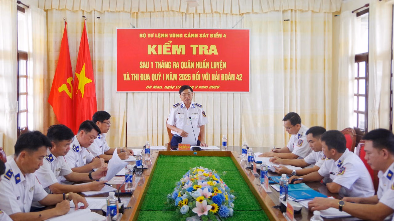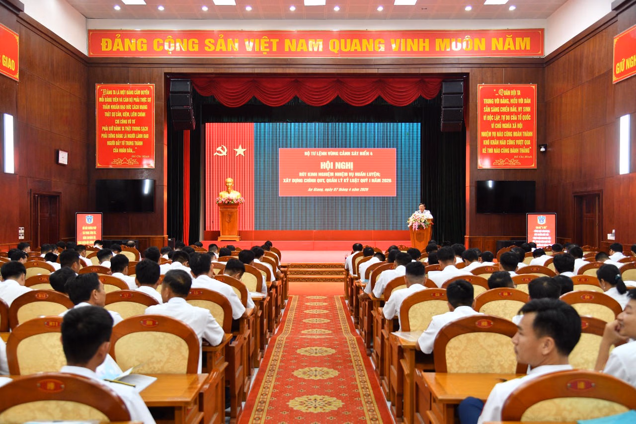 Ngày 7/4, tại Đặc khu Phú Quốc, tỉnh An Giang, BTL Vùng Cảnh sát biển 4 tổ chức Hội nghị rút kinh nghiệm nhiệm vụ huấn luyện, xây dựng chính quy, quản lý kỷ luật Quý I năm 2026.