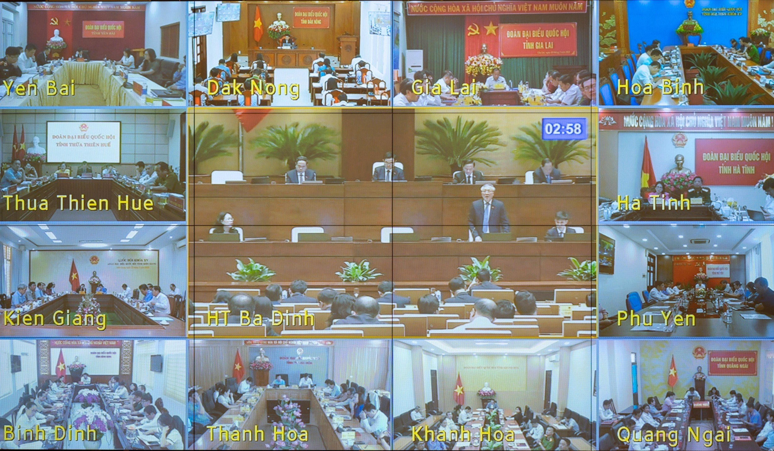 Phiên chất vấn được tổ chức tại Phòng Diên Hồng, Nhà Quốc hội, kết nối truyền hình trực tuyến với 62 Đoàn đại biểu Quốc hội tại các tỉnh, TP trực thuộc Trung ương. |