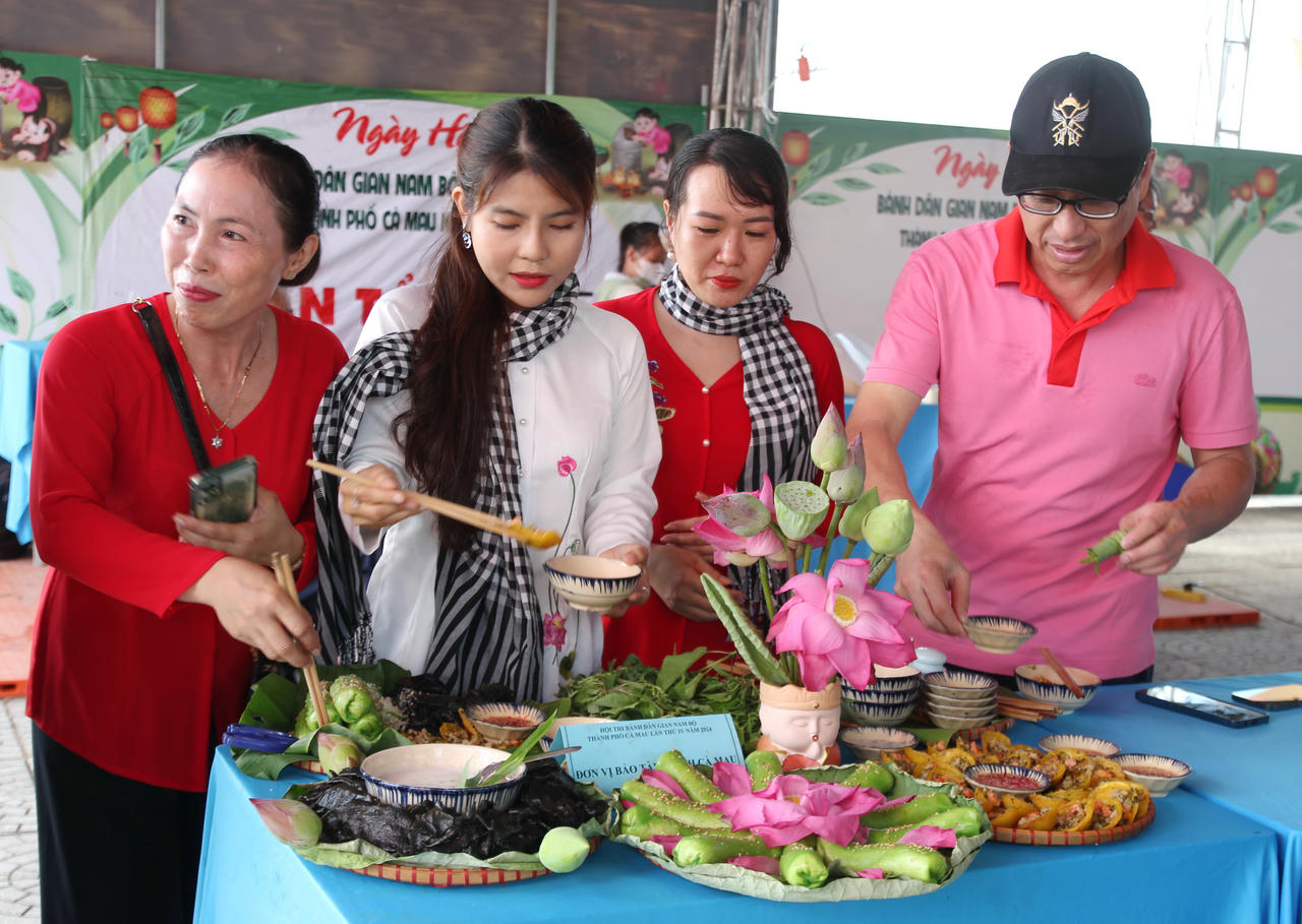 Trước đó, có 30 đội đến từ Hội Phụ nữ các huyện, TP Cà Mau và các xã, phường trên địa bàn thành phố, cùng nghệ nhân các tỉnh đã trình diễn làm bánh dân gian Nam Bộ với những món bánh dân dã, độc đáo từ những nguyên liệu thuần thiên nhiên. Theo đó, mỗi đội thi gồm 5 thành viên phối hợp nhịp nhàng, làm ra những chiếc bánh dân gian như: bánh quy, bánh bò, bánh ít, khoai mì sợi… gợi lên ký ức miền quê nồng hậu, bình yên.
