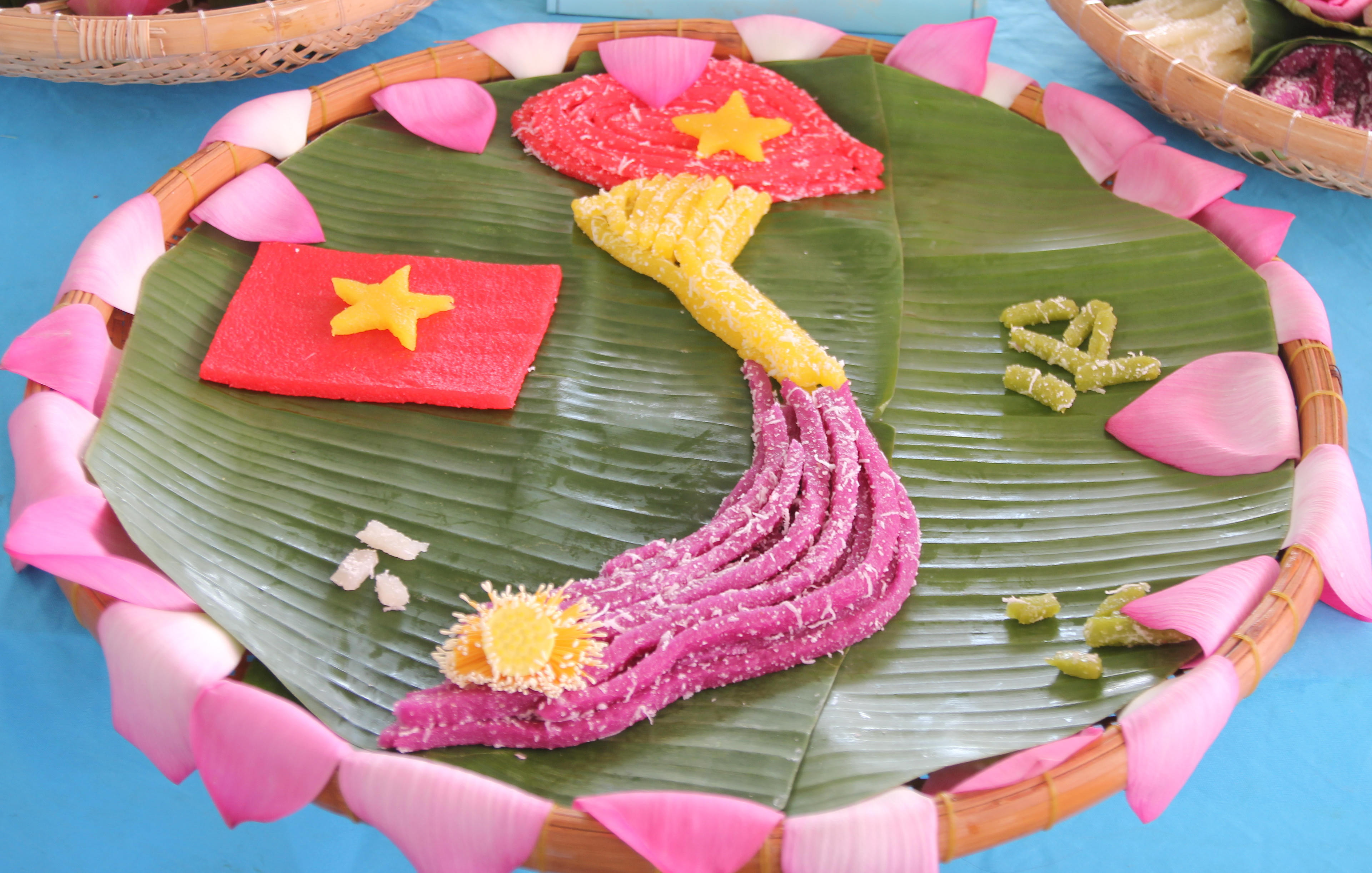 Những chiếc bánh được xếp thành hình bản đồ Việt Nam của do đơn vị xã An Xuyên, TP Cà Mau thực hiện. |