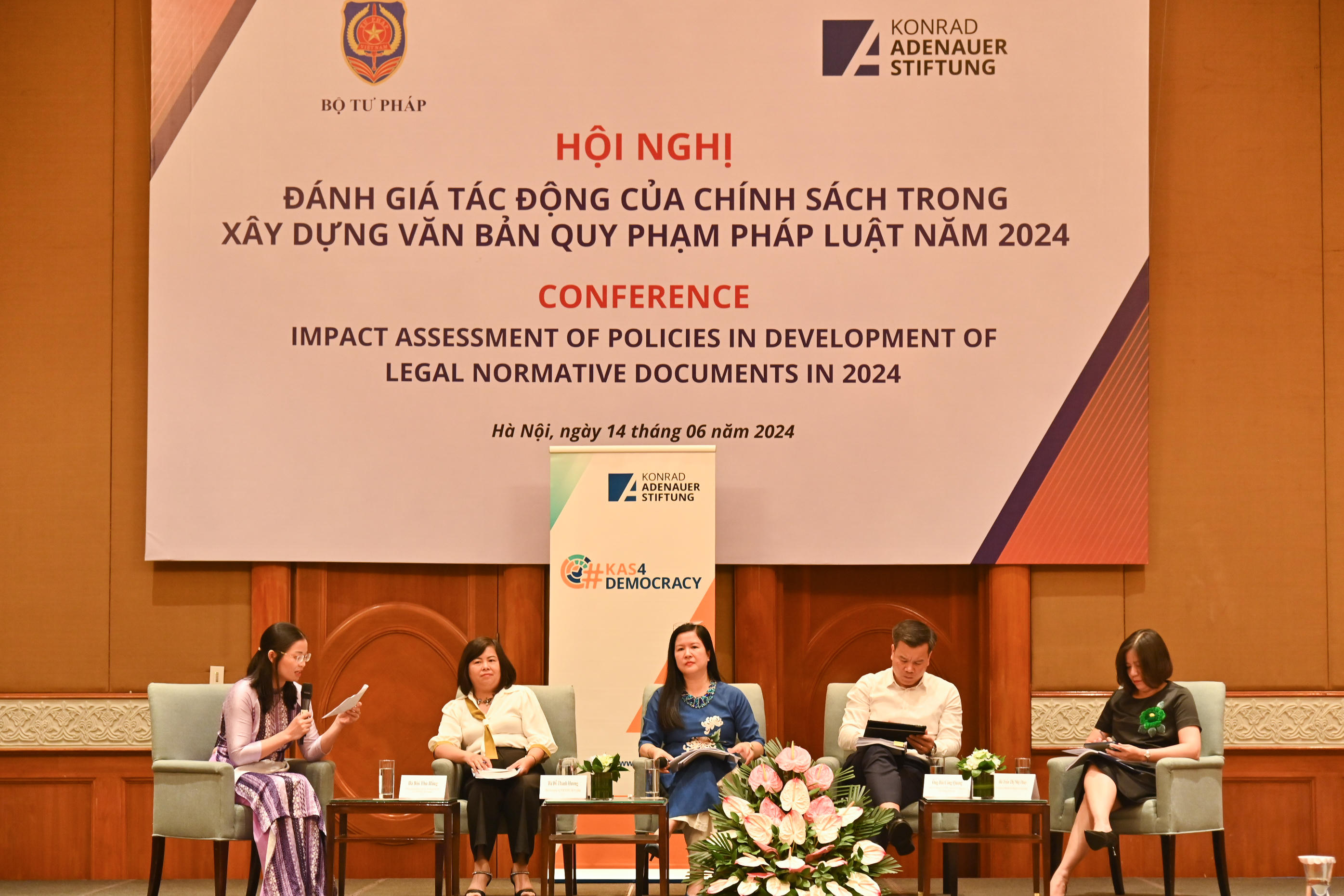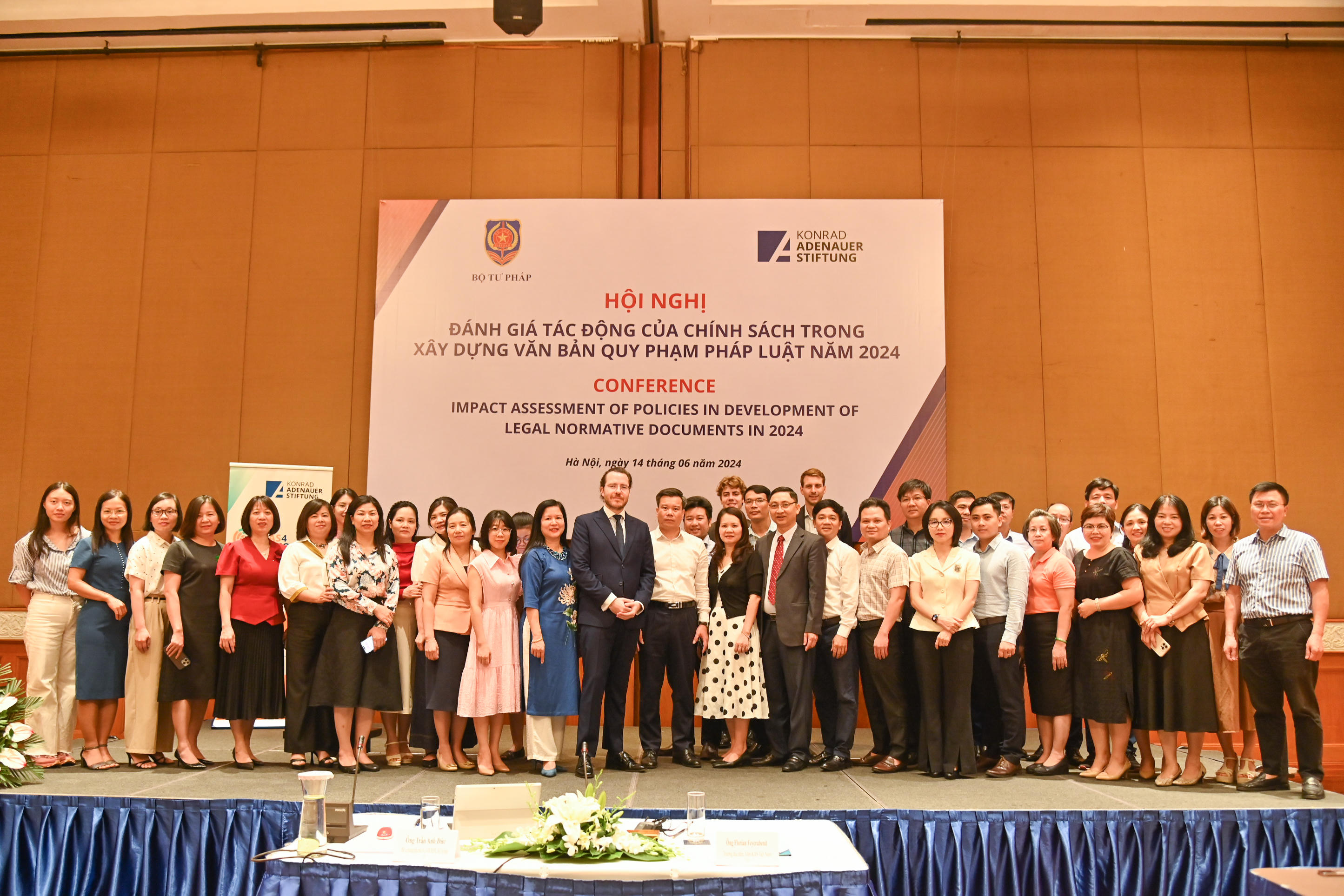 (PLVN) - Ngày 14/6, Bộ Tư pháp phối hợp với Konrad Adenauer Stiftung (Viện KAS), Cộng hòa Liên bang Đức tổ chức Hội nghị đánh giá tác động của chính sách trong xây dựng văn bản quy phạm pháp luật (VBQPPL) năm 2024.