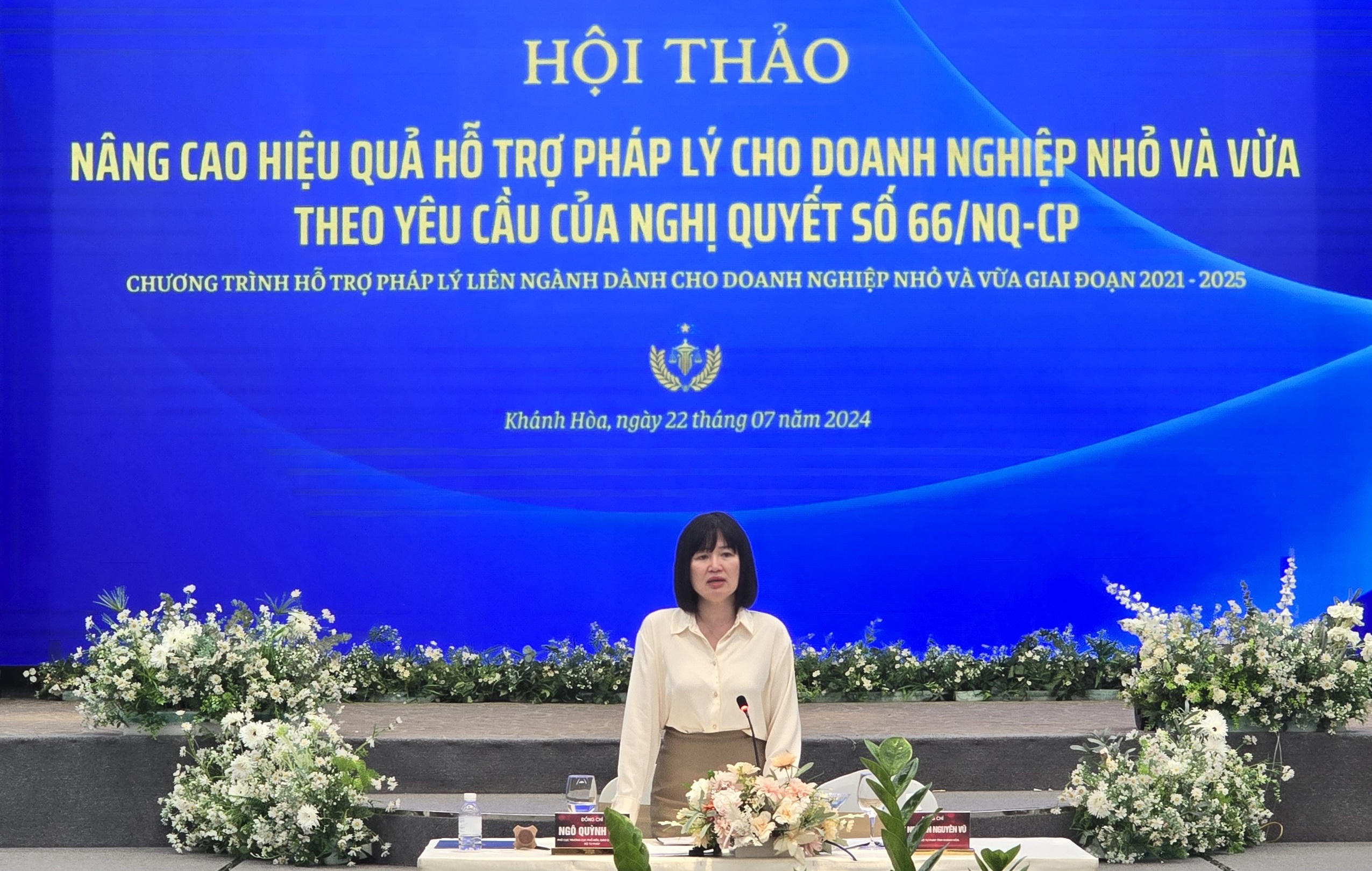 Tại hội thảo, gần 150 đại biểu đại diện cho các sở, ban, ngành, địa phương thuộc tỉnh Khánh Hòa, đại diện Đoàn Luật sư tỉnh, Hội Luật gia tỉnh và một số DNNVV trên địa bàn tỉnh Khánh Hòa đã trao đổi, thảo luận về những khó khăn, hạn chế, vướng mắc của công tác hỗ trợ pháp lý cho DNNVV hiện nay, từ thể chế, quy định đến tổ chức thực hiện các văn bản hiện hành; kiến nghị, đề xuất nâng cao hiệu quả công tác này để đáp ứng yêu cầu thực tiễn; đưa ra các giải pháp khắc phục một số bất cập về thể chế, quy định hiện hành về hỗ trợ pháp lý cho DNNVV.