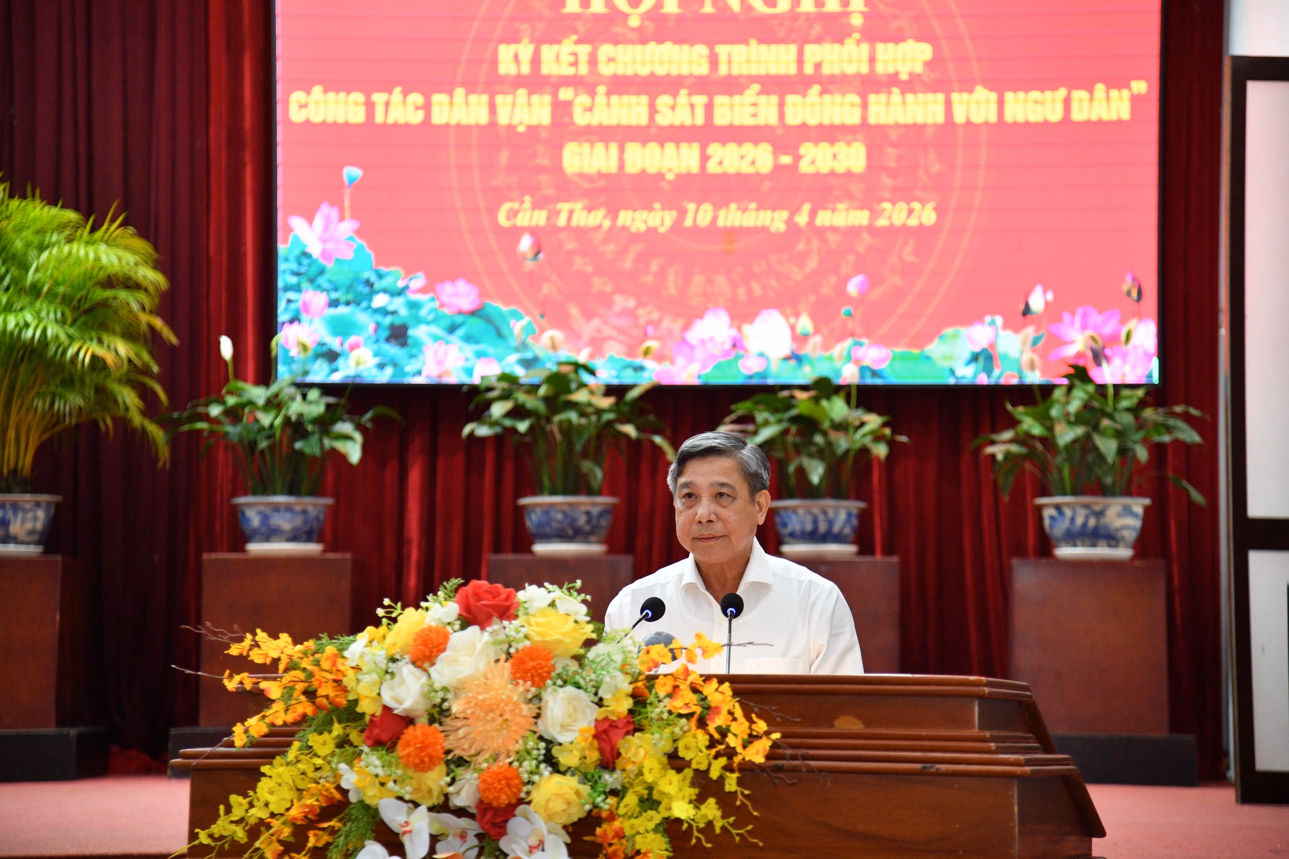 Chiều 10/4, tại phường Ninh Kiều, thành phố Cần Thơ, Ban Thường vụ Đảng ủy Cảnh sát biển Việt Nam phối hợp với Ban Thường vụ: Thành ủy Cần Thơ, Tỉnh ủy An Giang, Tỉnh ủy Cà Mau tổ chức Hội nghị ký kết Chương trình phối hợp công tác dân vận “Cảnh sát biển đồng hành với ngư dân”, giai đoạn 2026 - 2030.