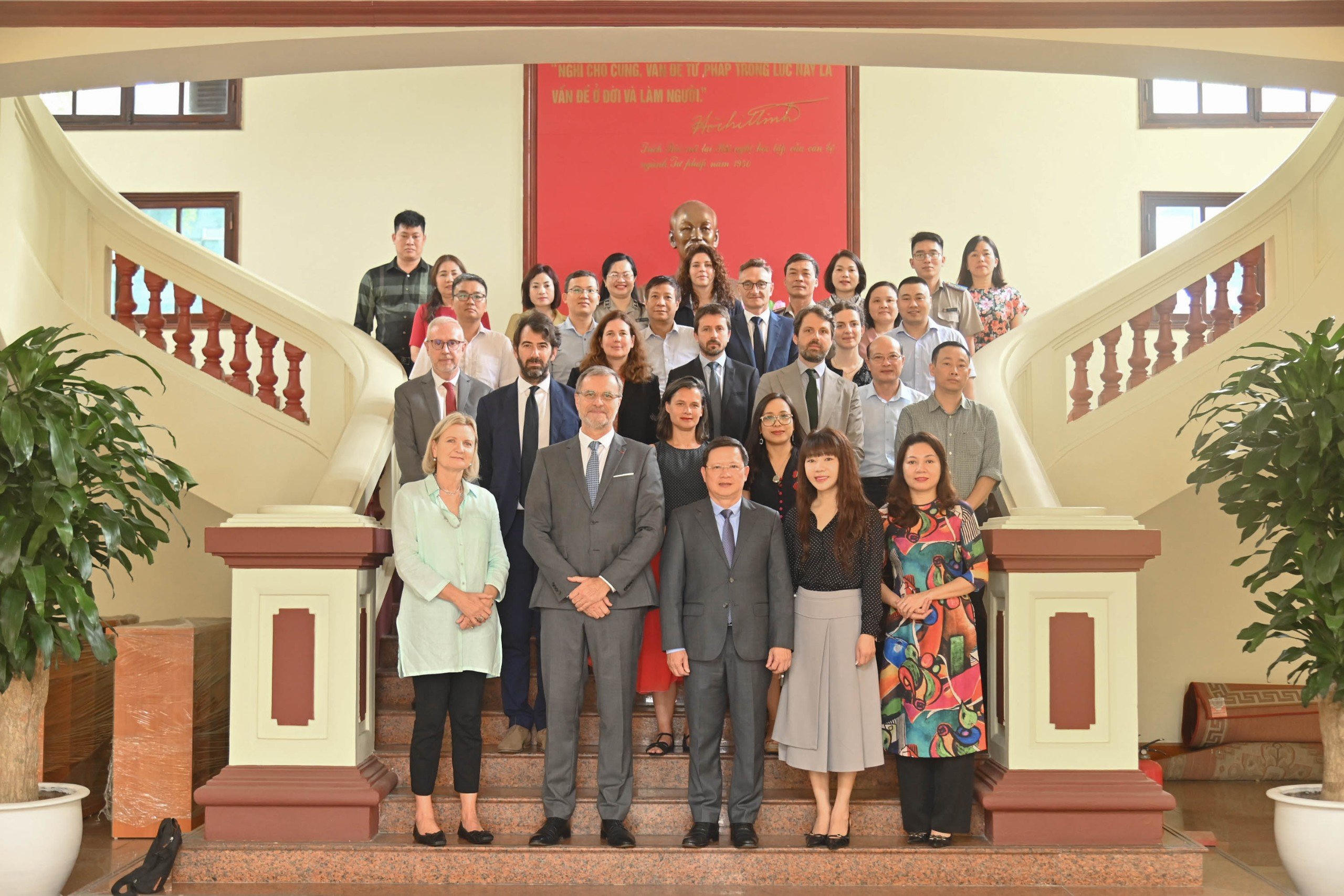 Chủ trì Tọa đàm có Thứ trưởng Bộ Tư pháp Mai Lương Khôi; Đại sứ đặc mệnh toàn quyền nước Cộng hòa Pháp tại Việt Nam Olivier Brochet; Phó Tổng cục trưởng Tổng cục THADS Trần Thị Phương Hoa; Phó Vụ trưởng Vụ Hợp tác quốc tế Nguyễn Linh Kha.