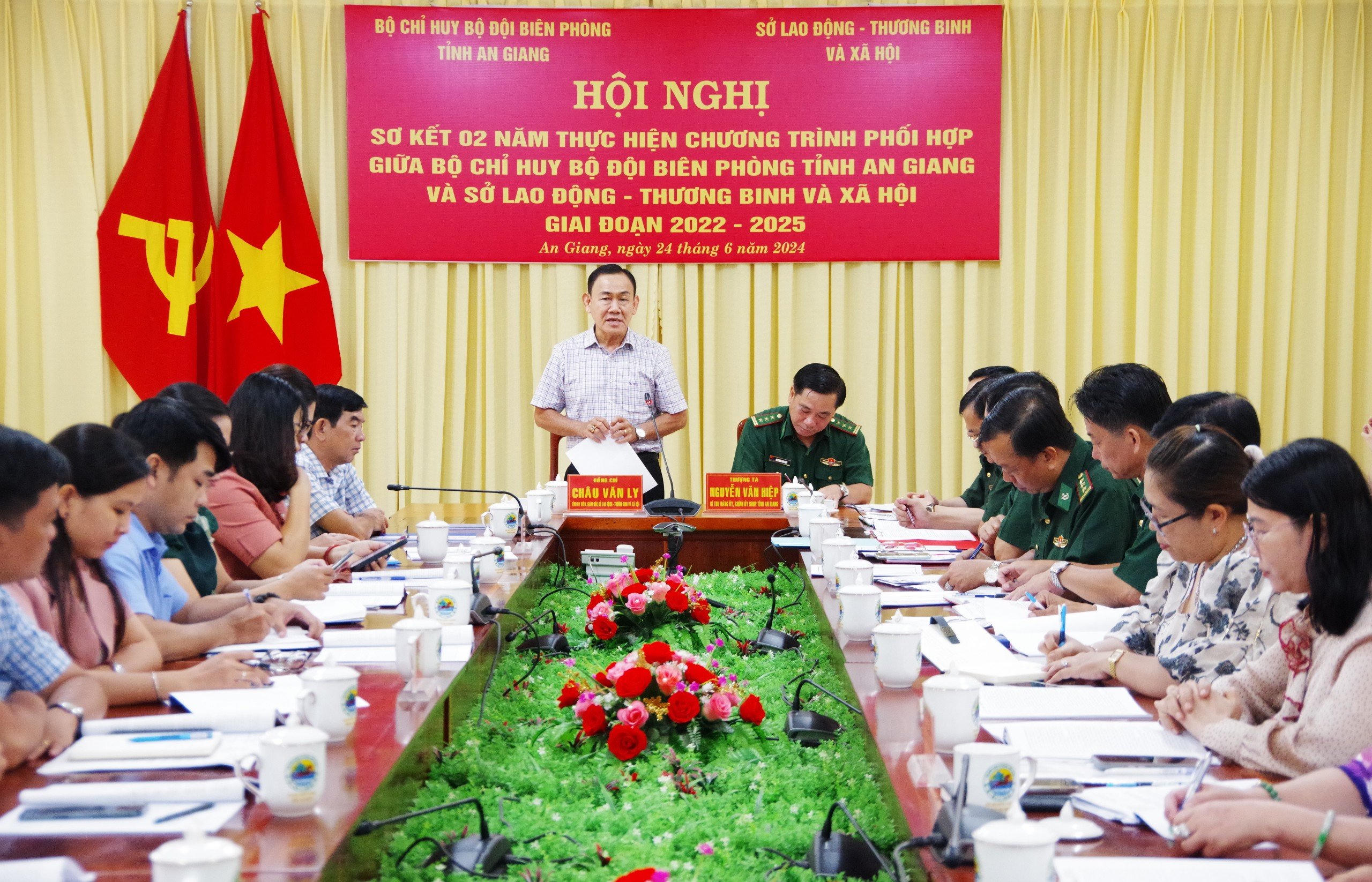 (PLVN) - Chiều 24/6, Bộ Chỉ huy Bộ đội Biên phòng (BĐBP) tỉnh An Giang tổ chức Hội nghị sơ kết 2 năm thực hiện chương trình phối hợp với Sở Lao động - Thương binh và Xã hội (LĐ - TBXH) giai đoạn 2022 - 2025.