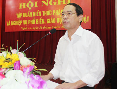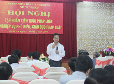 (PLO) - Sáng 31/7, Bộ Tư pháp phối hợp với Sở Tư pháp Nghệ An tổ chức hội nghị Tập huấn kiến thức pháp luật và nghiệp vụ phổ biến, giáo dục pháp luật (PBGDPL).