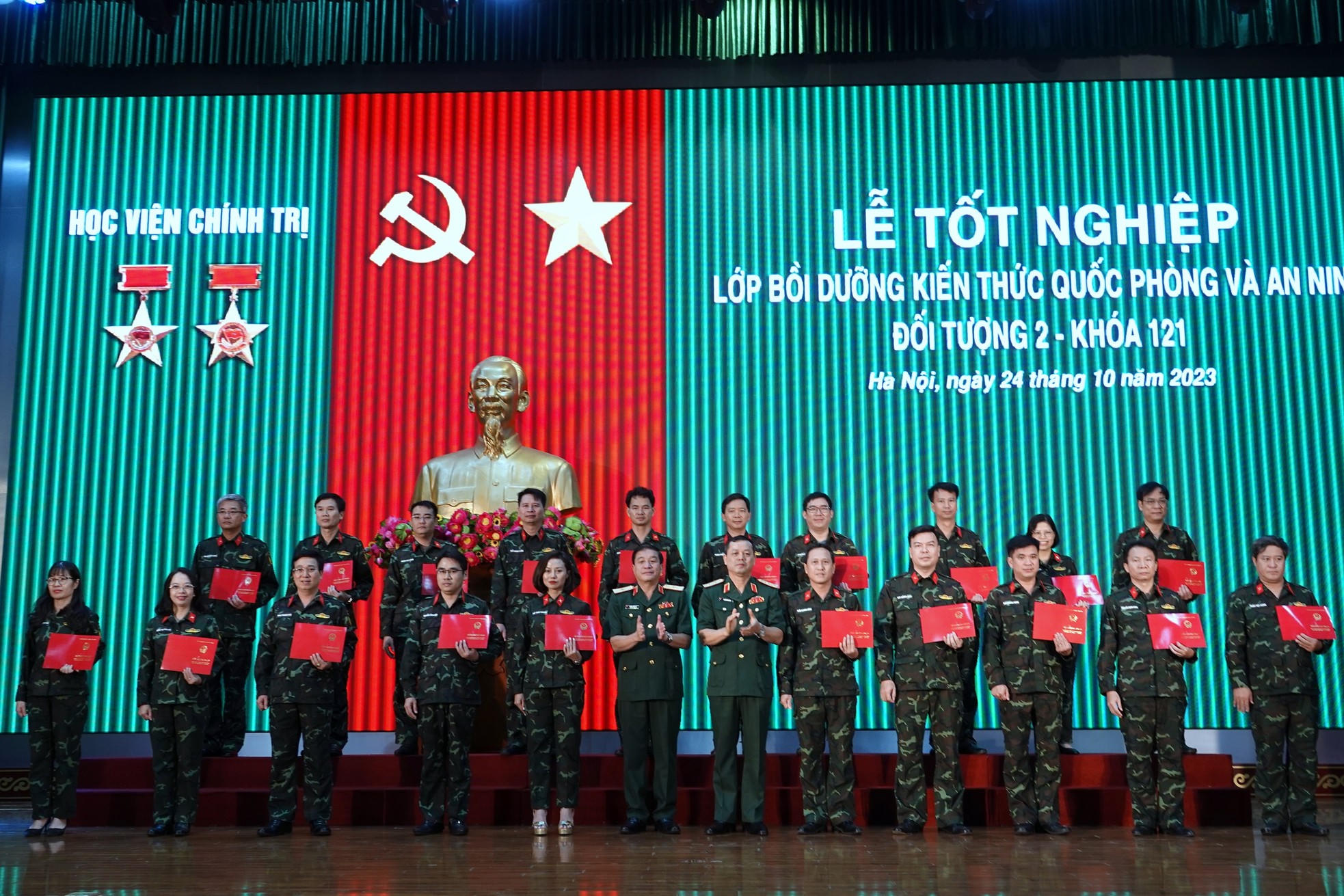 Chiều 24/10, tại Hà Nội, Học viện Chính trị (Bộ Quốc phòng) tổ chức Lễ tốt nghiệp Lớp bồi dưỡng kiến thức quốc phòng và an ninh đối tượng 2 - Khóa 121 năm 2023 và trao chứng nhận tốt nghiệp cho các học viên.