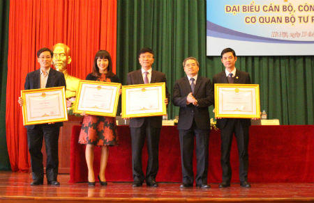 Nhân dịp này, Hội nghị đã công bố và trao Quyết định khen thưởng cho 2 tập thể, 2 cá nhân được nhận Bằng khen của Thủ tướng, cho 9 tập thể được nhận Cờ Thi đua ngành và 5 cá nhân được công nhận Chiến sỹ thi đua ngành năm 2015. Hội nghị cũng tiến hành bầu và ra mắt Ban Thanh tra nhân dân gồm 5 đồng chí nhiệm kỳ năm 2016 – 2017.