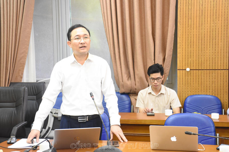 Đồng chí Phan Hồng Nguyên, Phó Cục trưởng Cục Phổ biến, giáo dục pháp luật phát biểu tại Hội nghị. |