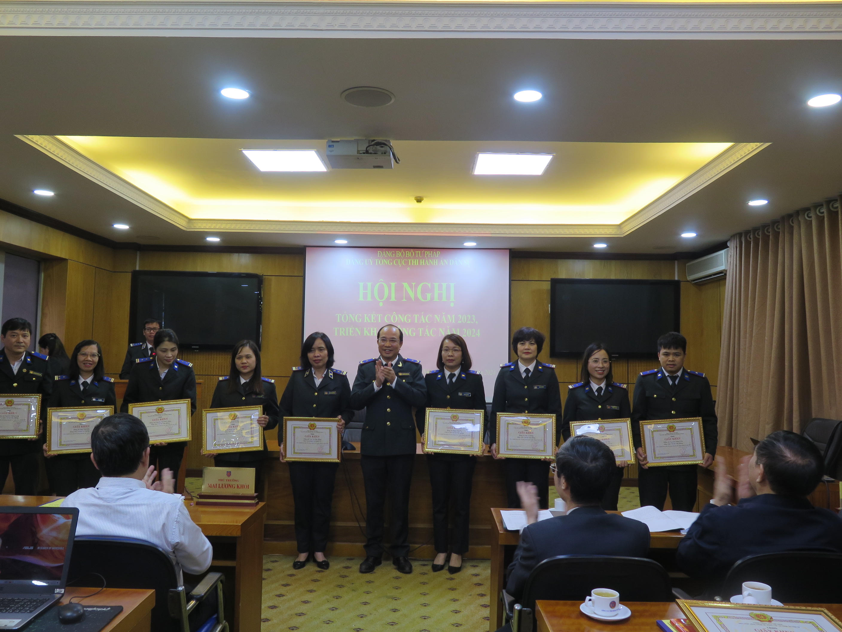 Chủ trì Hội nghị là Ủy viên Ban thường vụ Đảng ủy Bộ Tư pháp, Bí thư Đảng ủy Tổng cục THADS, Tổng cục trưởng Tổng cục THADS Nguyễn Quang Thái; Ủy viên Ban Thường vụ Đảng ủy Tổng cục, Phó Tổng cục trưởng Tổng cục THADS Nguyễn Thắng Lợi.