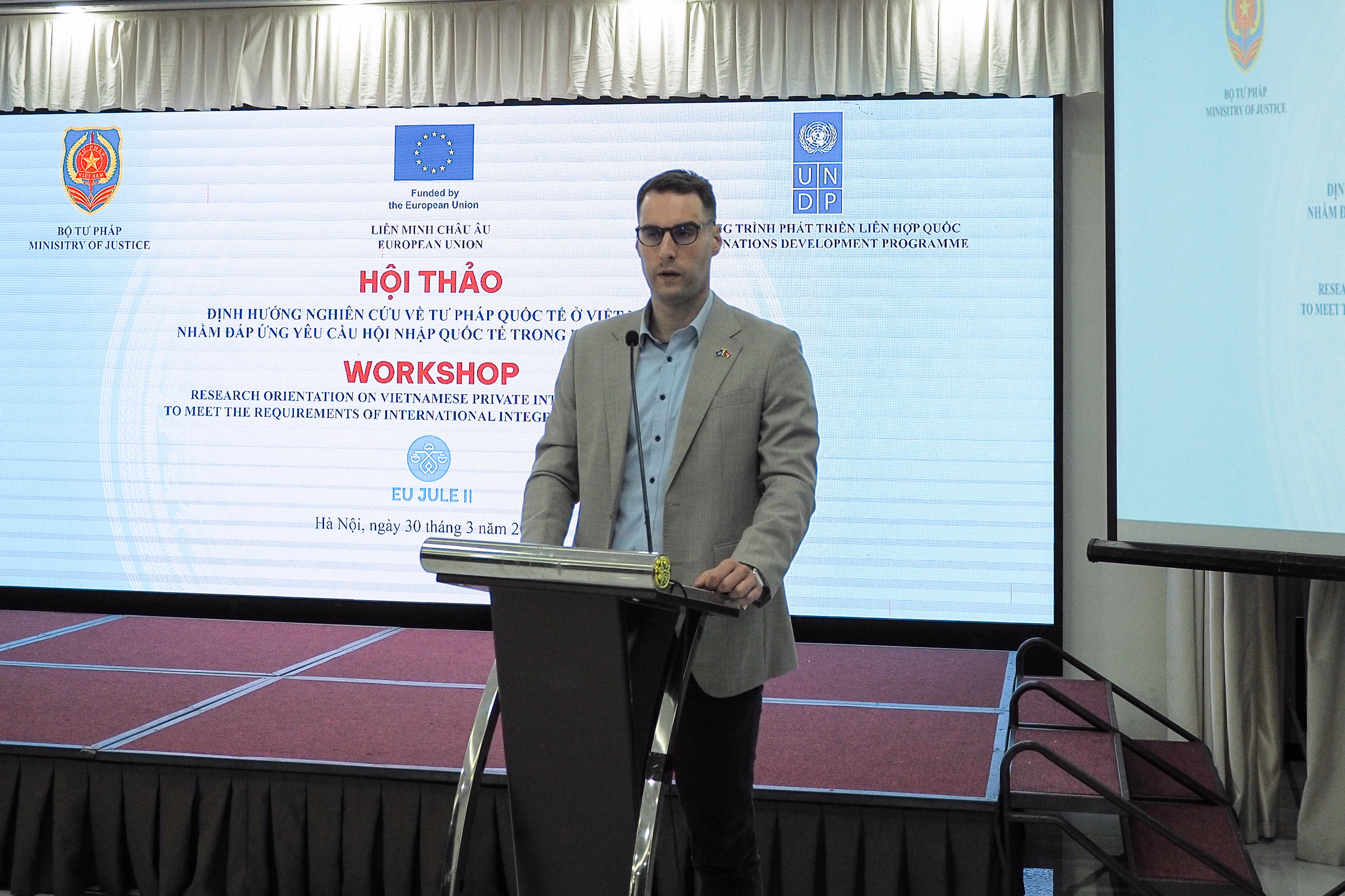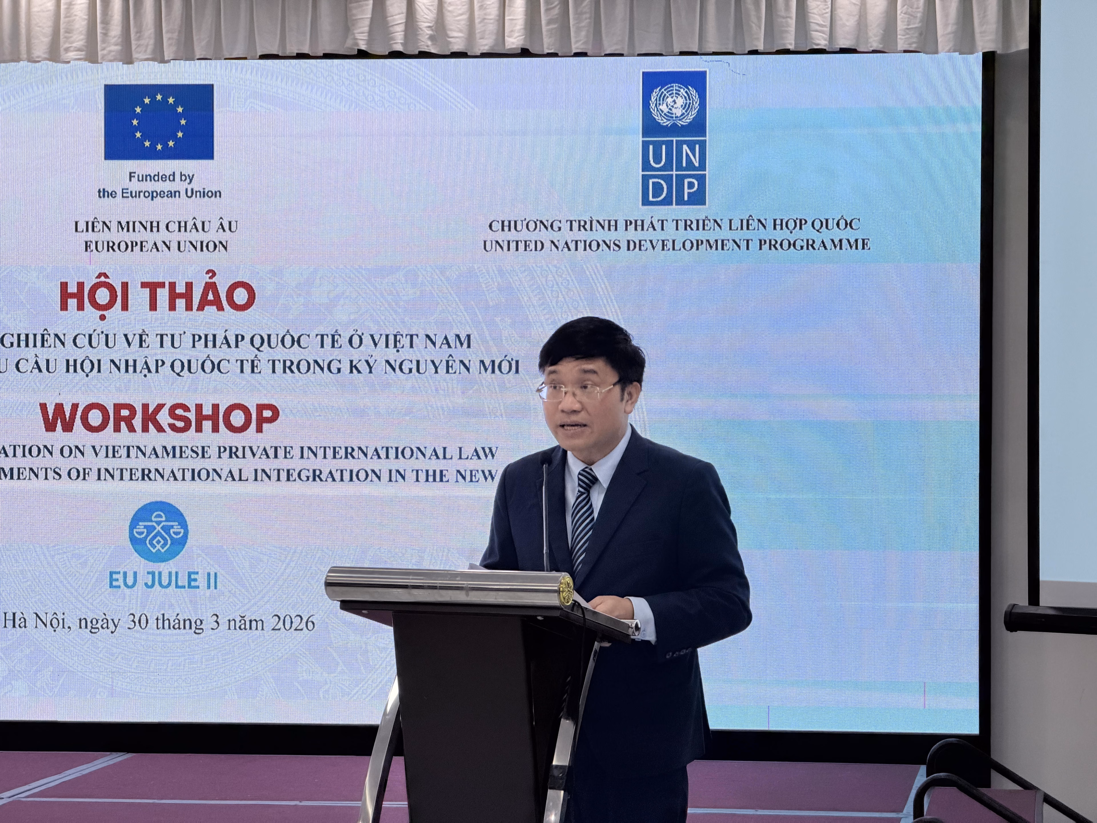 Ngày 30/3, Bộ Tư pháp phối hợp với Liên minh châu Âu và Chương trình phát triển Liên hợp quốc – UNDP tổ chức Chương trình Hội thảo quốc tế “Định hướng nghiên cứu về tư pháp quốc tế ở Việt Nam nhằm đáp ứng yêu cầu hội nhập quốc tế trong Kỷ nguyên mới”.