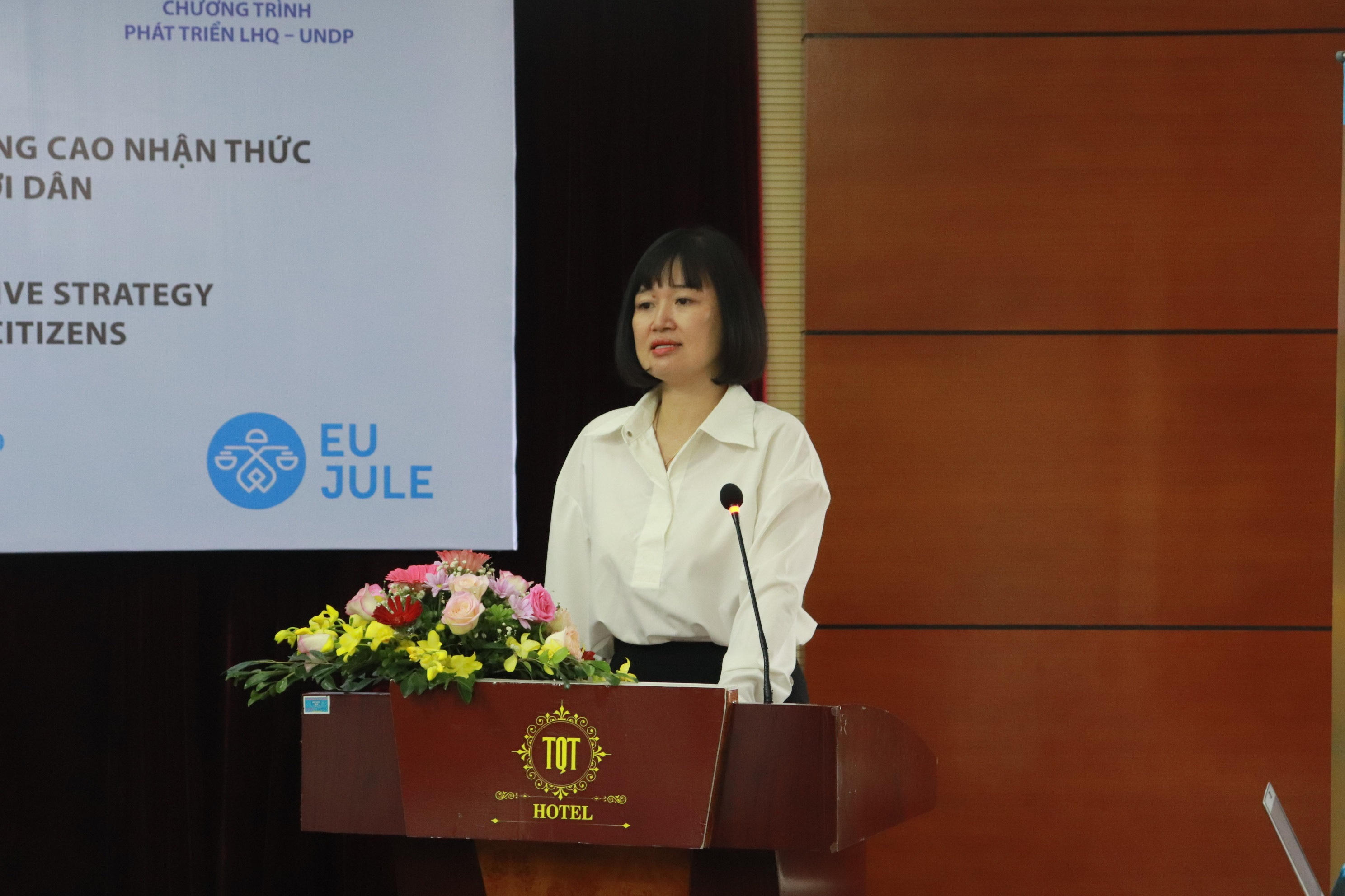 Tham dự và chủ trì Chương trình có ông Lê Vệ Quốc, Vụ trưởng Vụ Phổ biến, giáo dục pháp luật (PBGDPL), Bộ Tư pháp; bà Đào Thị Thu An, Quản lý Dự án EU JULE, Chương trình phát triển Liên hợp quốc tại Việt Nam cùng các chuyên gia, đại diện lãnh đạo một số đơn vị có liên quan.