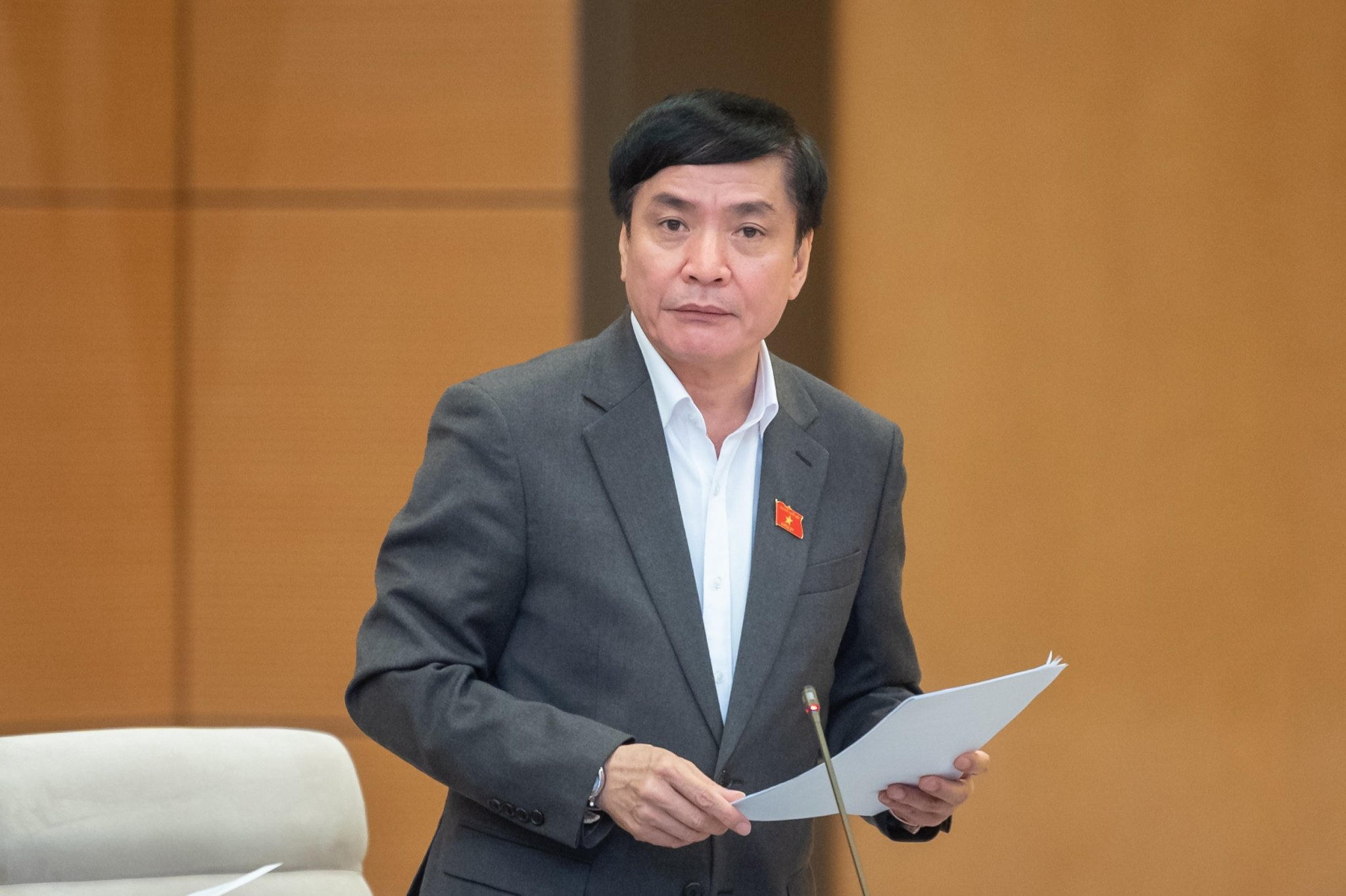 Tổng Thư ký Quốc hội, Chủ nhiệm Văn phòng Quốc hội Bùi Văn Cường trình bày Báo cáo. |