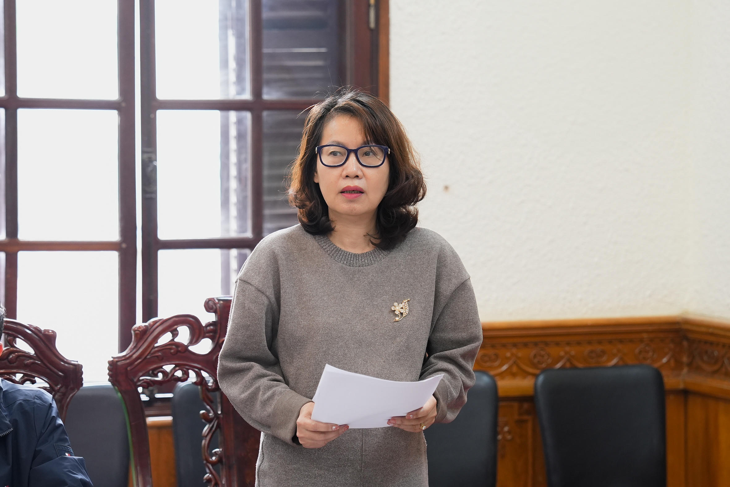 Bà Phan Thị Hồng Hà, Chánh Văn phòng Ban Cán sự Đảng, Vụ trưởng Vụ Tổ chức cán bộ báo cáo tại Hội nghị. |