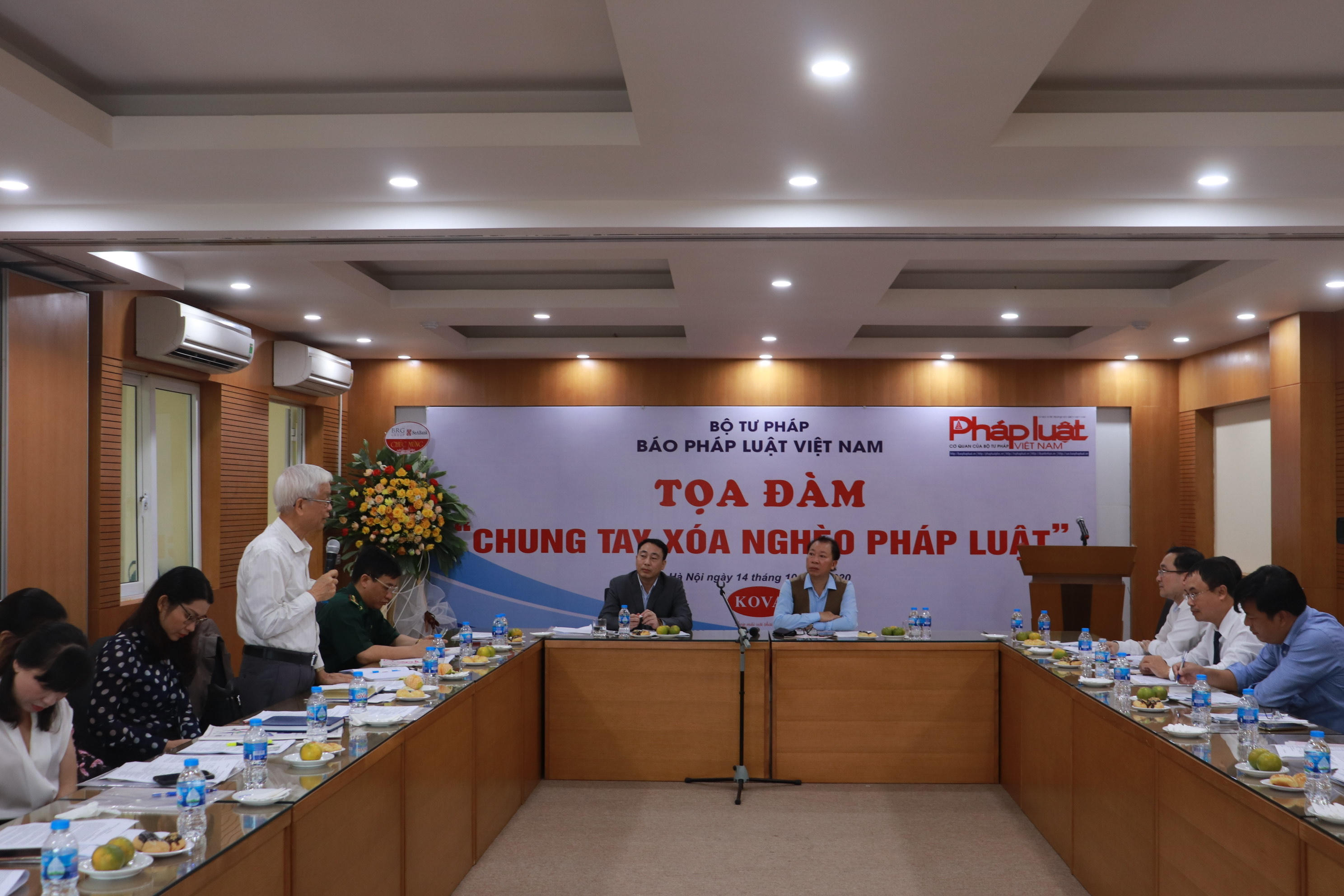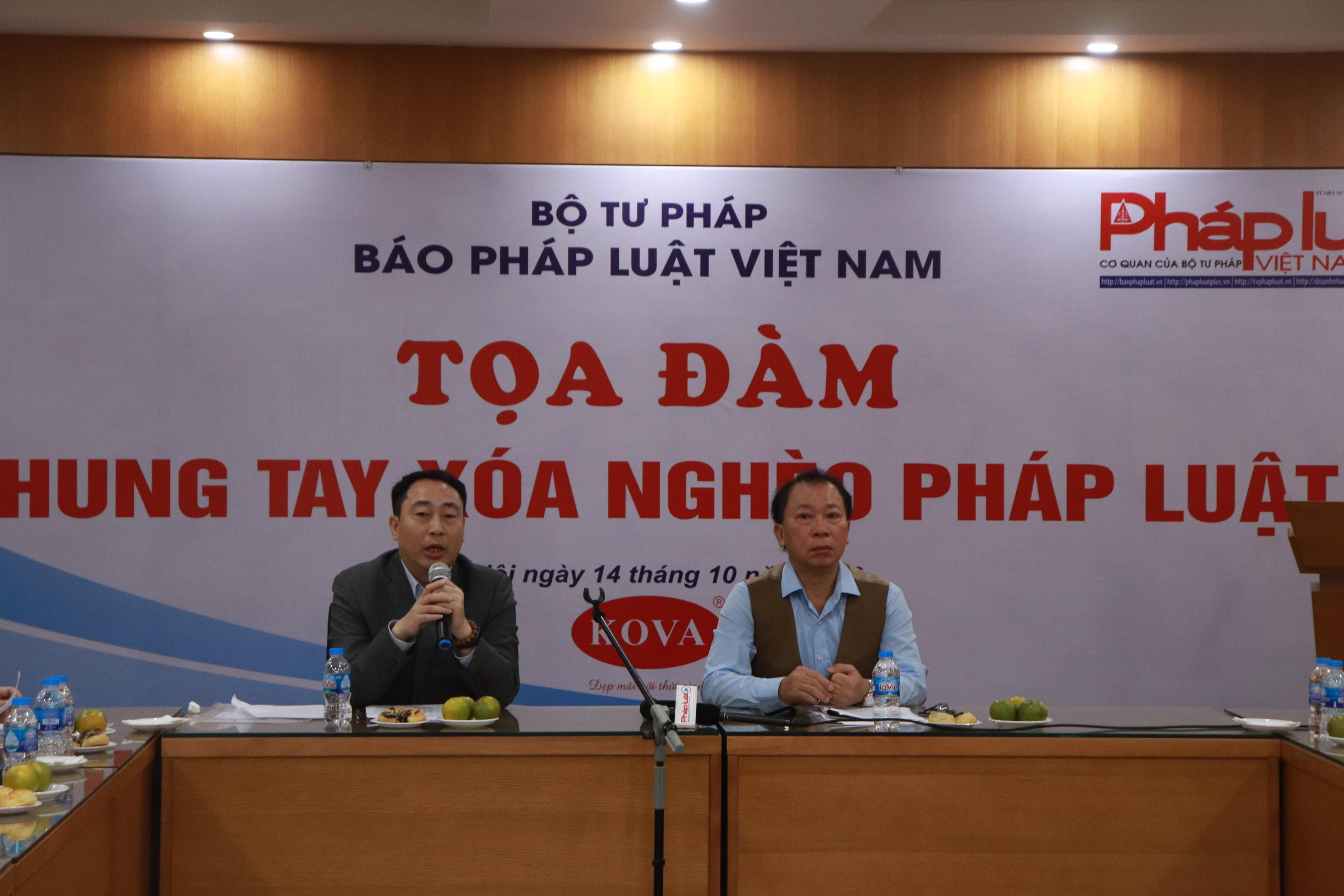 Còn Vụ trưởng Vụ PBGDPL Lê Vệ Quốc ghi nhận và đánh giá cao Chương trình chung tay xóa nghèo pháp luật của Báo PLVN khi không chỉ hỗ trợ về mặt vật chất mà còn góp phần tích cực đưa pháp luật đến với người dân, đặc biệt là vùng sâu, vùng xa, những nơi được coi là “vùng trũng pháp luật”. Tuy nhiên, để đáp ứng yêu cầu đặt ra ngày càng cao đối với công tác PBGDPL, cần sự chung tay của toàn xã hội. Vì vậy, Tọa đàm mong muốn nhận được các ý kiến góp ý, trao đổi để cùng tìm ra những giải pháp hữu hiệu, thực chất hơn để cùng chung tay xóa nghèo pháp luật, nâng cao nhận thức và ý thức chấp hành pháp luật cho người dân trong thời gian tới.