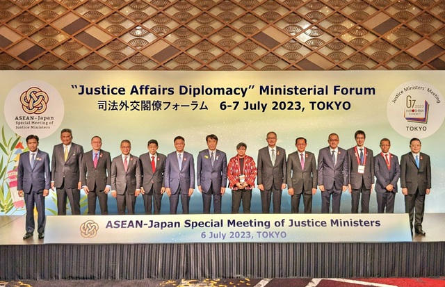 Một trong các hoạt động hợp tác đa phương nổi bật được tổ chức trong năm 2023 là sự tham gia tích cực với tinh thần trách nhiệm cao tại Hội nghị đặc biệt Bộ trưởng Tư pháp các nước ASEAN - Nhật Bản và Hội nghị Bộ trưởng Tư pháp các nước ASEAN - G7. Với tính chất là hội nghị đầu tiên cấp Bộ trưởng Tư pháp giữa ASEAN và Nhật Bản, đây là mốc lịch sử quan trọng đánh dấu bước phát triển mới trong liên kết ngoại khối của ASEAN, góp phần đưa quan hệ hợp tác ASEAN - Nhật Bản ngày càng đi vào chiều sâu thực chất, vì lợi ích của người dân mỗi bên. Trong khuôn khổ sáng kiến này, Nhật Bản đã và đang triển khai các chương trình, dự án hỗ trợ kỹ thuật cho các quốc gia thành viên ASEAN với mục tiêu hướng tới pháp quyền, tiếp cận công lý, không để ai bị bỏ lại phía sau.