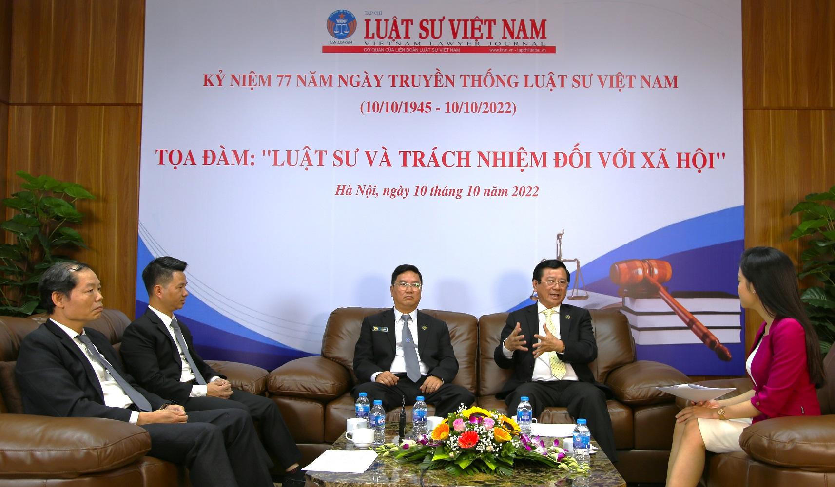 (PLVN) - Hướng tới Kỷ niệm 77 năm Ngày Truyền thống Luật sư Việt Nam (10/10/1945-10/10/2022), sáng (10/10), Tạp chí Luật sư Việt Nam đã tổ chức chương trình Tọa đàm với chủ đề: “Luật sư và trách nhiệm đối với xã hội”.
