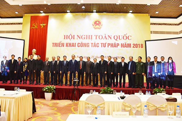(PLO) - Sáng nay 25/12, Bộ Tư pháp đã tổ chức Hội nghị toàn quốc triển khai công tác Tư pháp năm 2018. Hội nghị được tổ chức theo hình thức trực tuyến tại 64 điểm cầu. Tham dự Hội nghị có Ủy viên Bộ Chính trị, Chủ tịch nước Trần Đại Quang, Chủ nhiệm Ủy ban Pháp luật Quốc hội Nguyễn Khắc Định, Chủ nhiệm Ủy ban Tư pháp Lê Thị Nga, Trưởng Ban Nội chính TW Phan Đình Trạc; Lãnh đạo một số Bộ, ban, ngành chức năng.