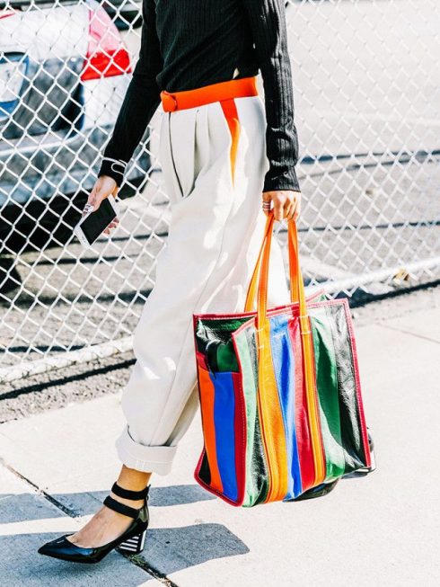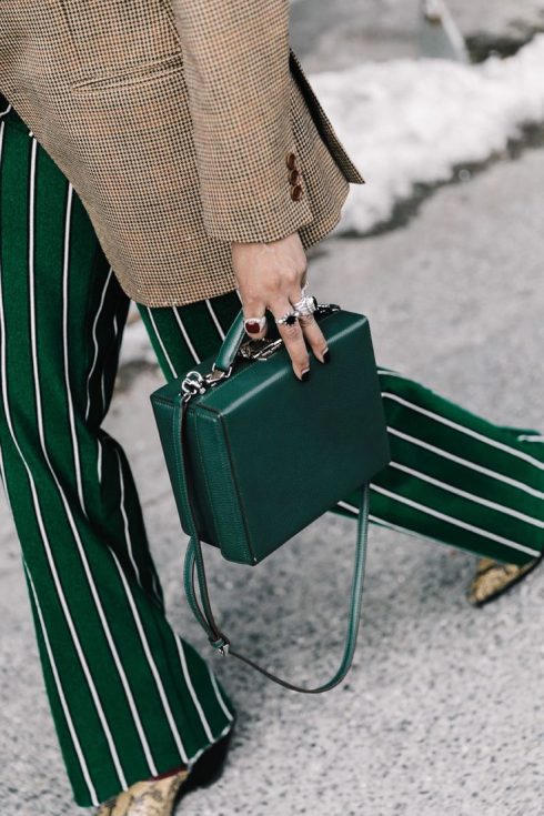 Túi xách họa tiết kẻ màu sắc lập tức nâng tầm trang phục (Ảnh: Whowhatwear)