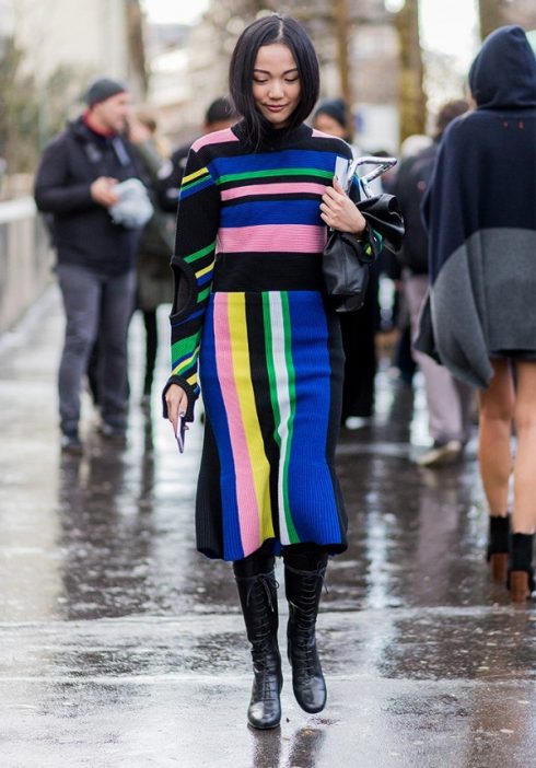 Họa tiết kẻ sọc màu sắc là lựa chọn hoàn hảo cho các tín đồ thời trang muốn làm mới mình trong tiết trời thu đông. Không bị giới hạn bởi phong cách, màu sắc hay chất liệu, phái đẹp hoàn toàn có thể áp dụng họa tiết sọc nhiều màu vào trang phục thường ngày.