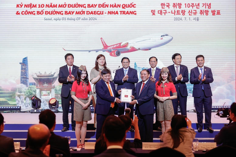 Tại Diễn đàn, Thủ tướng và các đại biểu cũng chứng kiến Hãng hàng không Vietjet kỷ niệm 10 năm mở đường bay tới "xứ sở Kim chi" và công bố đường bay mới Daegu - Nha Trang; đồng thời chứng kiến 8 văn kiện hợp tác giữa các đối tác Việt Nam và Hàn Quốc.