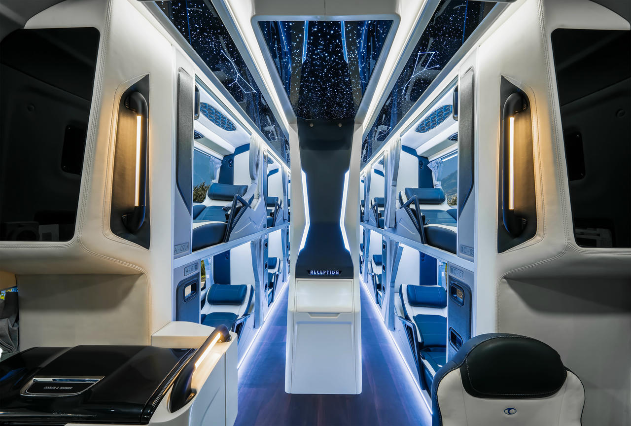 Khoang hành khách bố trí giường nằm khoa học, nội thất được phối màu nhã nhặn, kết hợp với hệ thống đèn LED ánh sáng dịu nhẹ, mang lại cảm giác thư giãn, dễ chịu.