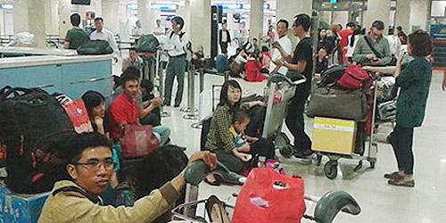 Khoảng 22 giờ 30' tối 12-2, hàng trăm hành khách giẫm đạp, chen lấn gây náo loạn phòng vé sân bay Tân Sơn Nhất vì bất bình với thông báo hoãn chuyến của Hãng hàng không Vietnam Airlines.
