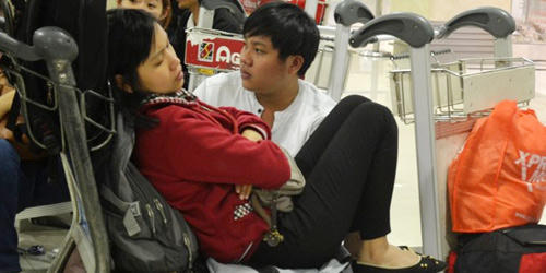 Đến gần 24 giờ, cả trăm hành khách vẫn còn ngồi chờ đợi tại sân bay. Quản lý sân bay nói với họ rằng sẽ nhanh chóng giải quyết, nhưng chẳng thấy bóng dáng nhân viên nào đứng ra giải quyết vụ việc này.