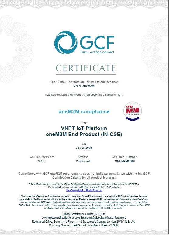 Được biết, hệ thống thử nghiệm tự động này tuân thủ đúng theo tiêu chuẩn ISO/IEC 9646, sử dụng ngôn ngữ thử nghiệm TTCN-3 mới nhất. Bên cạnh đó, 24 lần kiểm nghiệm sản phẩm (test case) còn lại được thử nghiệm trực tiếp dưới sự giám sát của Authorized Test Lab của Hàn Quốc. Sau khi đã trải qua số lần thử nghiệm nêu trên, VNPT và Authorized Test Lab tiếp tục hoàn thiện hồ sơ, đệ trình lên GCF (Diễn đàn chứng chỉ toàn cầu) để GCF rà soát, xem xét và cấp chứng chỉ cho VNPT IoT Platform.