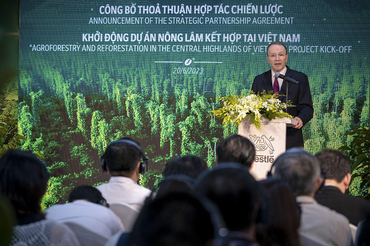 “Trong chuỗi cung ứng của chúng tôi, nông nghiệp chiếm hơn 2/3 tổng lượng phát thải khí nhà kính. Là một trong những nguồn cung cà phê hàng đầu cho Nestlé, Việt Nam là ưu tiên lớn của chúng tôi. Chúng tôi cam kết hỗ trợ người nông dân Việt Nam chuyển đổi sang nông nghiệp tái sinh nhằm cải thiện sinh kế và ứng phó với biến đổi khí hậu thông qua chương trình Nescafé Plan. Chúng tôi cũng đang tập trung thực hiện chương trình trồng rừng tại đây”, ông Mark Schneider chia sẻ.