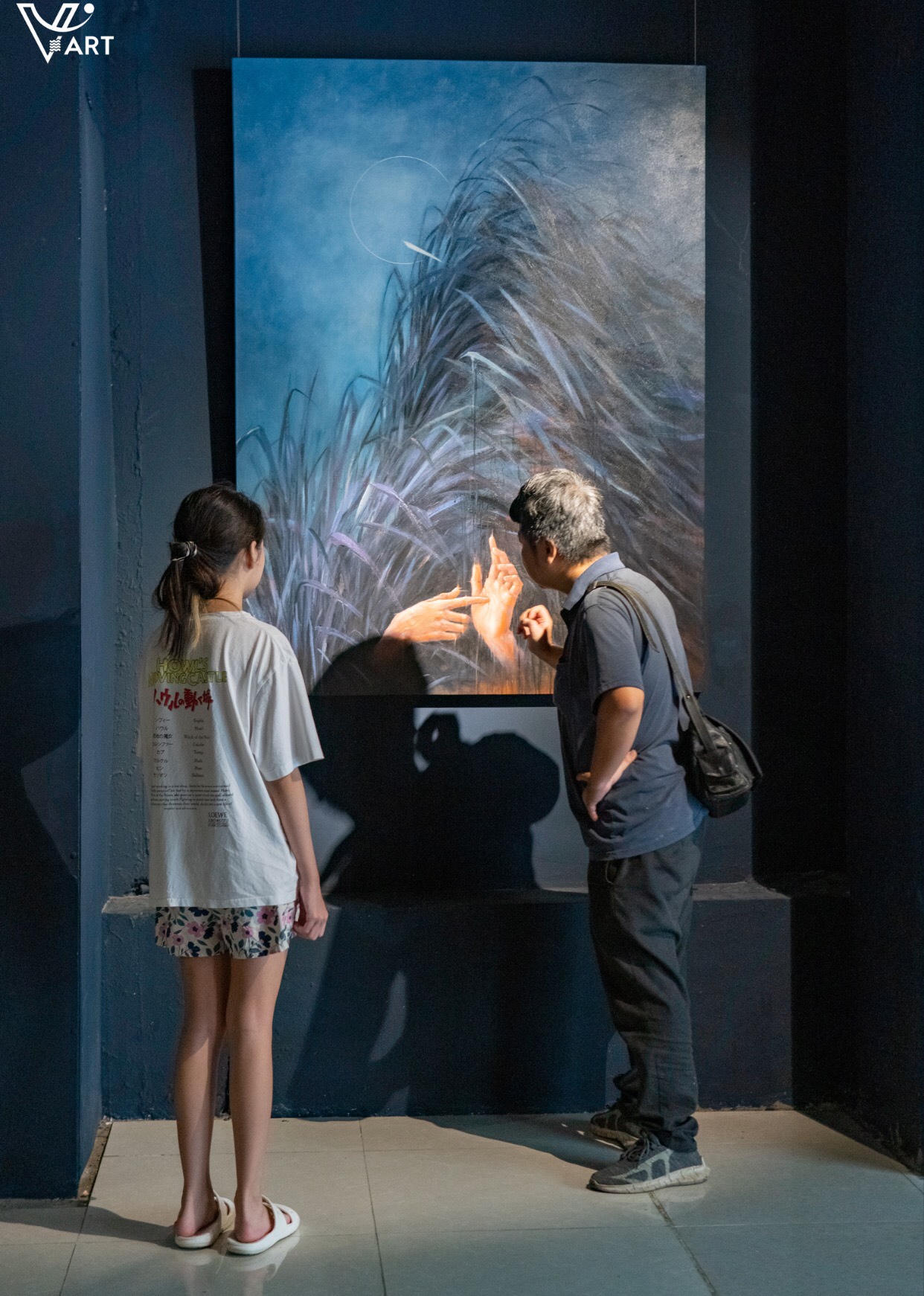 Hoạ sĩ Phạm Anh (bên trái) tại triển lãm "Kẻ Mộng Mơ" vào sáng 10/9/2023 |