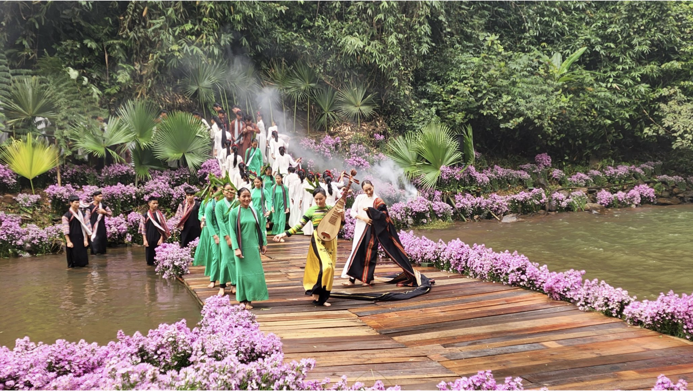 Hơn 100 diễn viên không chuyên người dân tộc và 40 nghệ sĩ, diễn viên, người mẫu đã diễn đạt câu chuyện thổ cẩm dệt bằng sợi tơ của Bảo Lộc giữa rừng núi đại ngàn Tây Nguyên, nơi được mệnh danh là "nàng thơ" của Kon Tum.