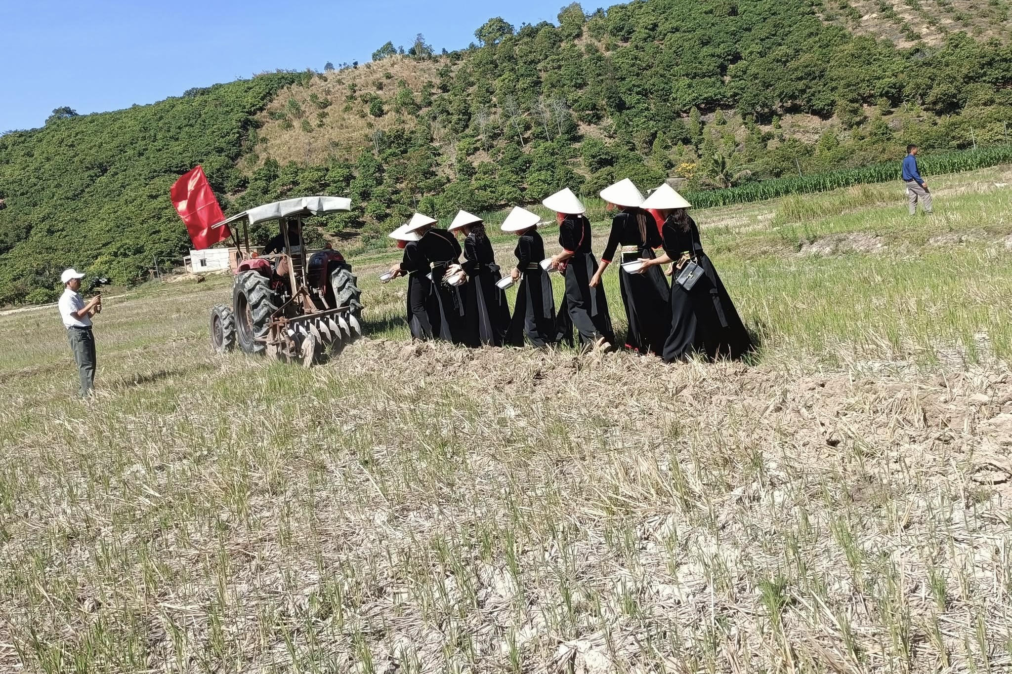 Thực hiện nghi thức cày ruộng với mong muốn đường cày may mắn đầu năm sẽ mang lại an khang, vật thịnh, mùa màng bội thu. |