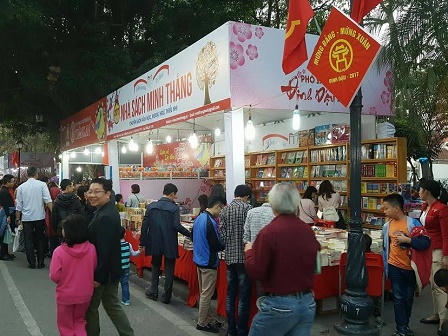 “Phố Sách Xuân Đinh Dậu 2017” tại phố Lê Thạch và Vườn hoa Lý Thái Tổ (khu vực nhà Bát Giác), quận Hoàn Kiếm, Hà Nội chộn rộn nhiều người dân và du khách khắp nơi đổ về. Phố sách Xuân gồm 25 gian hàng sách được trưng bày đẹp, với sự tham gia của nhiều nhà xuất bản, công ty sách được bạn đọc quan tâm.