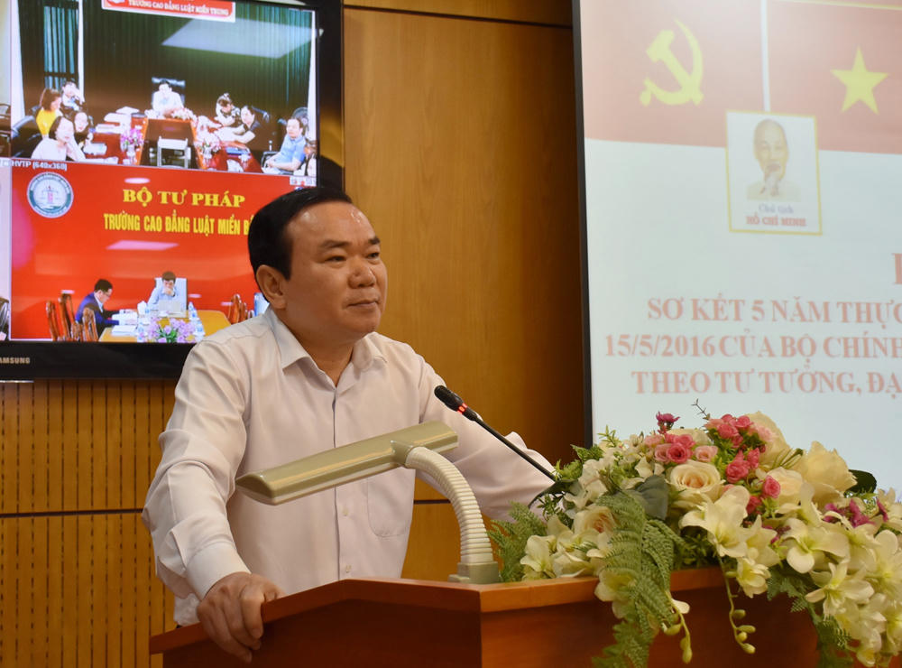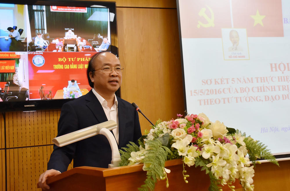 Tiếp thu ý kiến của Lãnh đạo Đảng ủy khối, Bộ trưởng Lê Thành Long đề nghị thời gian tới, Đảng ủy Bộ, các chi bộ, đảng bộ trực thuộc cần xây dựng kế hoạch để việc quán triệt, triển khai Chỉ thị số 05-CT/TW là việc làm thường xuyên, lâu dài, gắn với việc thực hiện Nghị quyết Trung ương 4 khóa XI, XII và bám sát chỉ đạo, hướng dẫn của cấp trên. Bộ trưởng nhấn mạnh việc học tập tư tưởng, đạo đức, phong cách Hồ Chí Minh cần có trọng tâm, trọng điểm, có chiều sâu, đặc biệt là tư tưởng tiến bộ của Người về Nhà nước và pháp luật; quyền tự do, bình đẳng của công dân; công tác cán bộ... Bộ trưởng lưu ý, mỗi cán bộ, công chức của Bộ, ngành Tư pháp cần nhớ lời Chủ tịch Hồ Chí Minh đã dạy “Nghĩ cho cùng, vấn đề tư pháp là vấn đề ở đời và làm người” để từ đó tiếp tục nỗ lực, phấn đấu, rèn luyện, tu dưỡng, xây dựng đội ngũ cán bộ Tư pháp vừa hồng, vừa chuyên, trong sạch, nhiệt tình, có uy tín, đam mê nghề nghiệp….