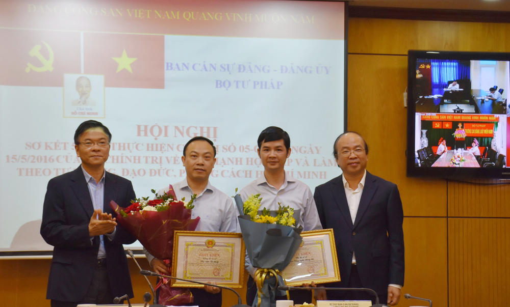 Sáng 18/3, Ban Cán sự Đảng, Đảng ủy Bộ Tư pháp đã tổ chức Hội nghị sơ kết 5 năm thực hiện Chỉ thị số 05-CT/TW ngày 15/5/2016 của Bộ Chính trị về đẩy mạnh học tập và làm theo tư tưởng, đạo đức, phong cách Hồ Chí Minh. Đồng chí Lê Thành Long, Ủy viên BCH Trung ương Đảng, Bí thư Ban cán sự Đảng, Bộ trưởng Bộ Tư pháp và đồng chí Phan Chí Hiếu, Bí thư Đảng ủy, Thứ trưởng Bộ Tư pháp chủ trì Hội nghị.