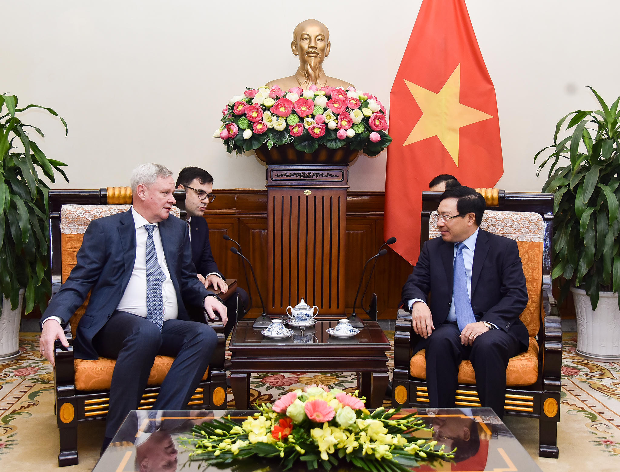 Trao đổi về quan hệ song phương, Phó Thủ tướng bày tỏ vui mừng trước sự phát triển tốt đẹp của hợp tác Việt – Nga, nhấn mạnh Việt Nam hết sức coi trọng sự gắn bó lâu dài và tình hữu nghị giữa nhân dân hai nước, đánh giá cao vai trò của quan hệ Đối tác chiến lược toàn diện Việt – Nga trong chính sách đối ngoại của Việt Nam.