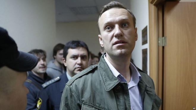 Riêng trong năm 2017, ông Alexei Navalny bị bắt 3 lần và bị kết án 30 ngày tù vì tổ chức biểu tình trái phép.