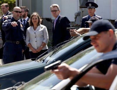 Bà Victoria Nuland thăm cơ sở đào tạo của Học viện Nội vụ Quốc gia tại Kiev (tháng 8/2015). Ảnh: Reuters |
