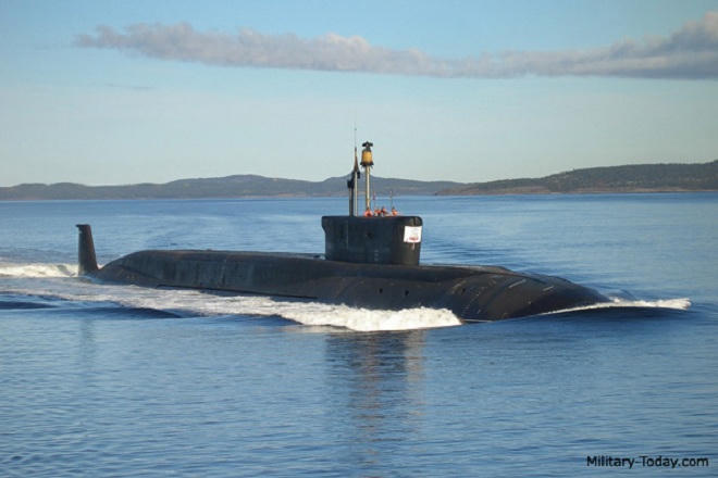 Lực lượng tàu ngầm hạt nhân Nga thua Mỹ về sự đồng bộ. Hiện tại, Nga có 3 tàu ngầm lớp 667DBR Kalmar (Delta-III) trang bị tên lửa liên lục địa loại nhiên liệu lỏng R-29R (NATO gọi là SS-N-18); 6 tàu ngầm 667BDRM Dolphin (Delta IV) trang bị loại tên lửa tân tiến nhất là R-29RMU2.1 Liner và 29RMU2 Sineva (NATO gọi là SS-N-23 Skiff), 3 tàu ngầm thế hệ mới Project 955 Borei. Project 941 Typhoon là chiếc tàu ngầm duy nhất trang bị tên lửa đạn đạo nhiên liệu rắn R-30 Bulava.
