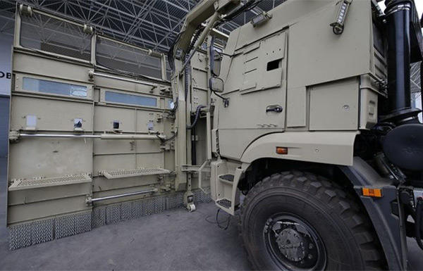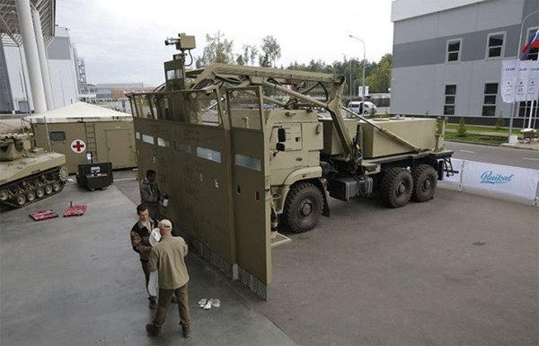 Theo Business Insider, chiếc xe có tên Shchit (Shield) dựa trên mẫu xe tải hạng nặng, có lá chắn thép rộng phía trước. Cỗ máy này có nhiều cổng ở lá chắn để lực lượng thi hành luật bắn các vật phóng. Trên xe còn có một còi phun nước lớn.