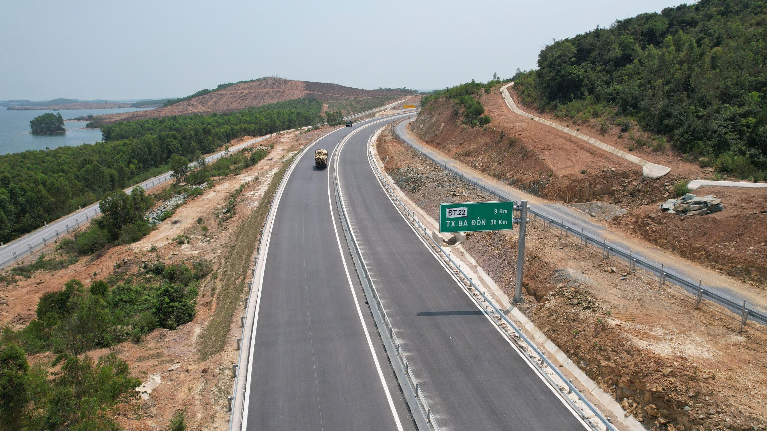 Cao tốc Bắc-Nam qua Quảng Bình đi dọc theo hồ Vực Tròn của huyện Quảng Trạch. |