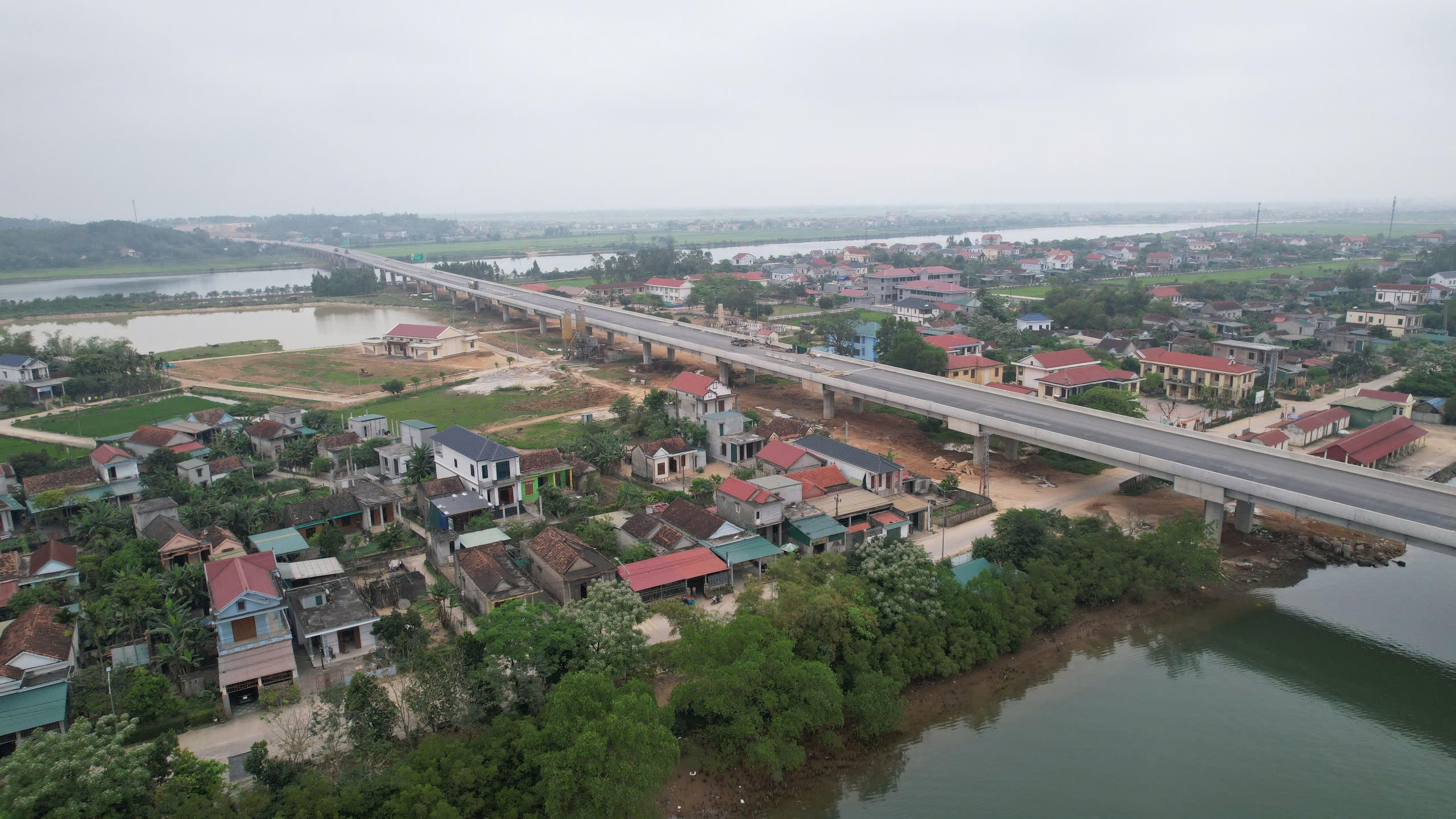 Cây cầu bắc qua sông Gianh, thuộc địa phận thị xã Ba Đồn, tỉnh Quảng Bình, trên cao tốc Bắc - Nam cơ bản hoàn thành. |