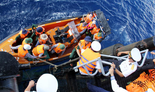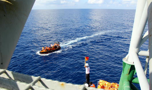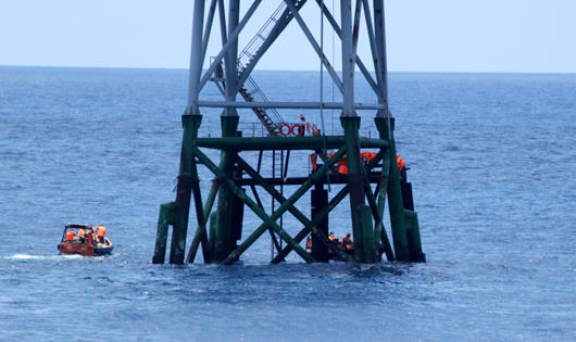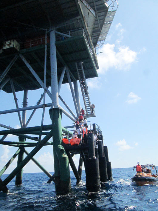 Vì vậy mỗi chuyến xuồng đưa người lên nhà giàn luôn là một cuộc cân não với thiên nhiên.