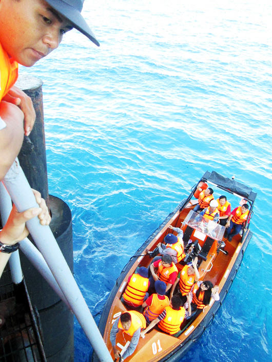 Nhưng khi đã bước chân lên tới nhà giàn, bạn sẽ gặp những nụ cười tươi rói của lính Hải quân. Đối với họ, tình cảm nồng ấm của người từ đất liền ra là món quà lớn nhất. Mỗi chuyến tàu tới gần với nhà giàn nghĩa là đất liền đang ở rất gần với họ.