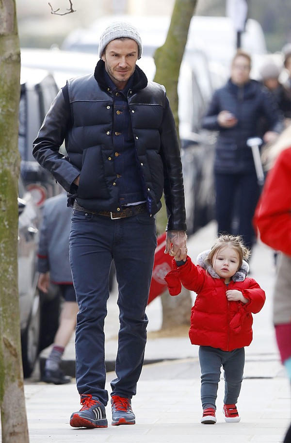 Hình ảnh Beckham đội mũ Beanie bế bé Harper đã trở thành biểu tượng hướng tới của mọi ông bố trẻ, cả về phong cách lẫn hình ảnh.