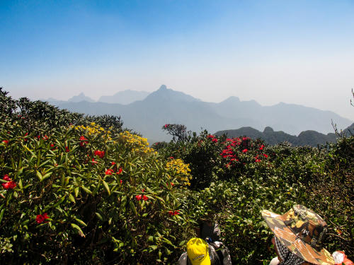 Ra khỏi rừng trúc, cả đoàn người ai nấy đều vui sướng thì bắt gặp ngay một rừng hoa đỗ quyên nở nhiều đến thế. Không phải là đỗ quyên mầu hồng nhạt nữa, mà là những cây hoa đỗ quyên mầu đỏ rực và mầu vàng. Những bông hoa nở đỏ rực thành từng mảng mọc xen kẽ với mảng hoa mầu vàng rất đẹp. Một vẻ đẹp hoang sơ cùng với những dãy núi chập trùng, mờ ảo phía sau. Sự xuất hiện của loài hoa đỗ quyên này làm cho các thành viên trong đoàn càng thêm phấn khích như thể đã được tiếp thêm một nguồn sức lực mới để đi tiếp…