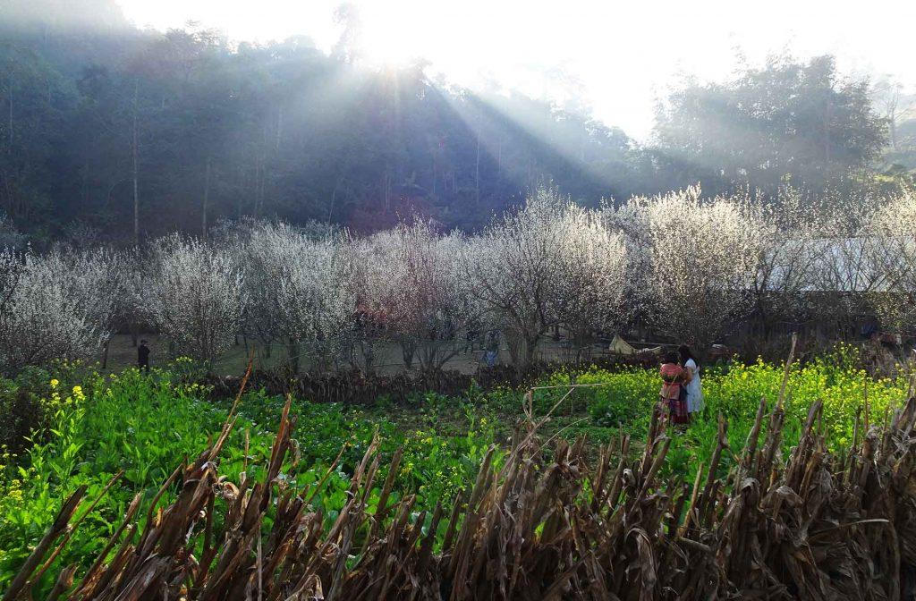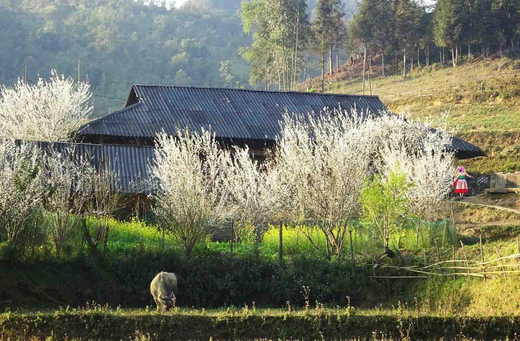 Lần đầu du lịch bản Tả Van Chư, du khách sẽ bị cuốn hút bởi không khí trong lành, mát mẻ. Mùa xuân, dọc triền đồi và khắp vườn nhà, đâu đâu cũng là sắc hoa mận. Màu trắng tinh khôi của hoa mận làm núi rừng như bừng sáng, khiến cho Tả Van Chư như được thay một lớp áo mới đón xuân.