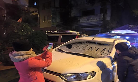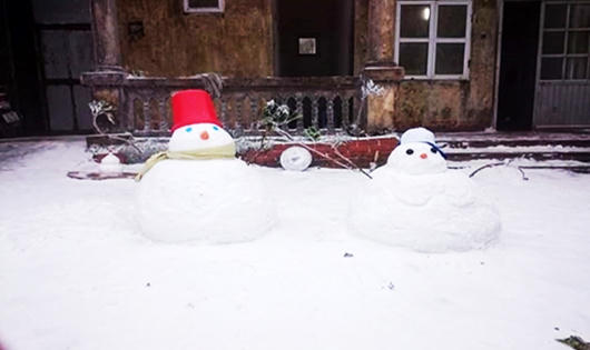 Tại Quảng Ninh, tuyết phủ trắng huyện Bình Liêu vào sáng nay. “Vào sáng nay tuyết rơi nhiều ở huyện Bình Liêu, nhiều bạn trẻ Quảng Ninh tranh thủ đến chiêm ngưỡng, chụp ảnh và tạo hình người tuyết, do địa hình thời tiết có điểm tương đồng như Sa Pa” - CTV P.Loan mô tả.